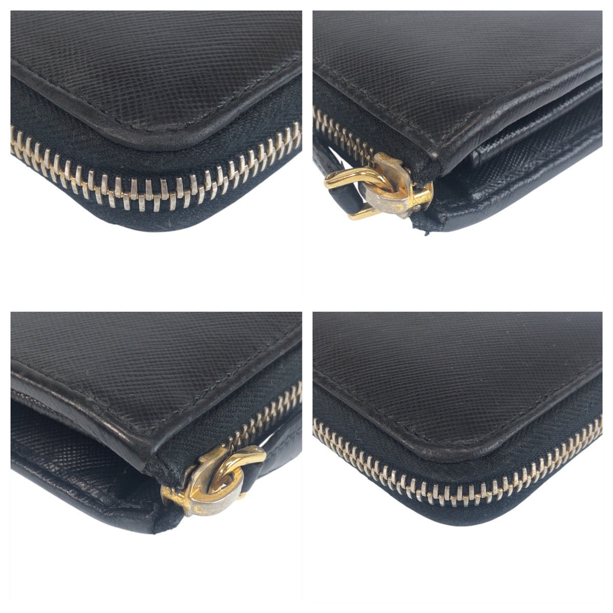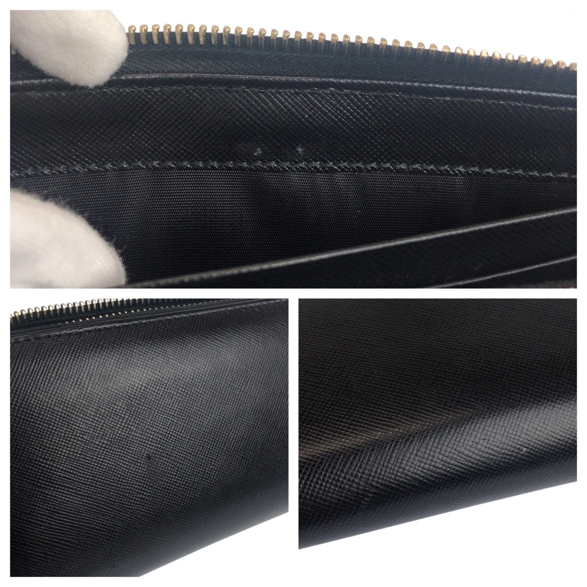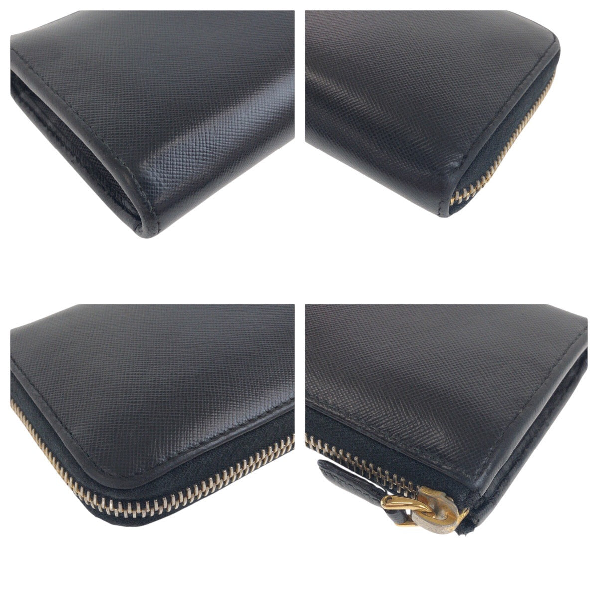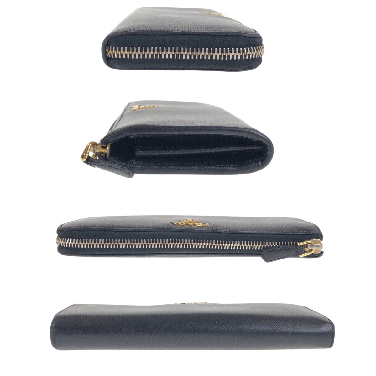 20355 PRADA プラダ サフィアーノ ロゴ ブラック 黒 ゴールド金具 レザー 長財布 ロングウォレット 男女兼用 レディース AB14