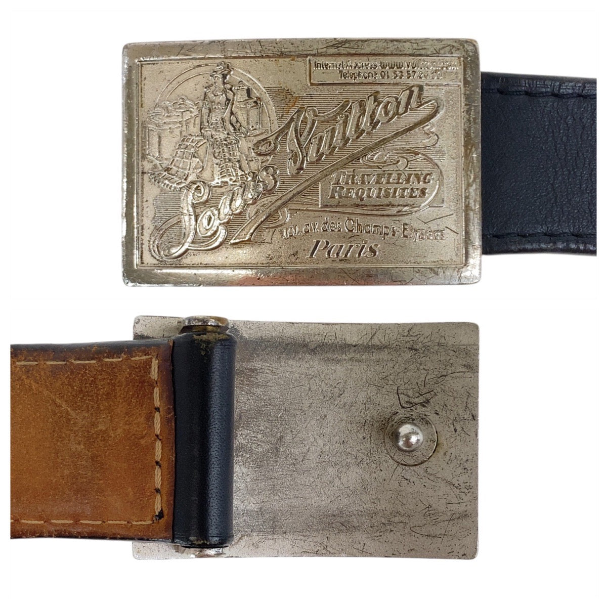 20360 LOUIS VUITTON ルイヴィトン サンチュール ジーンズ 100cm/40インチ ブラック 黒 シルバー金具 レザー / メタル M6812 ベルト メンズ AB23
