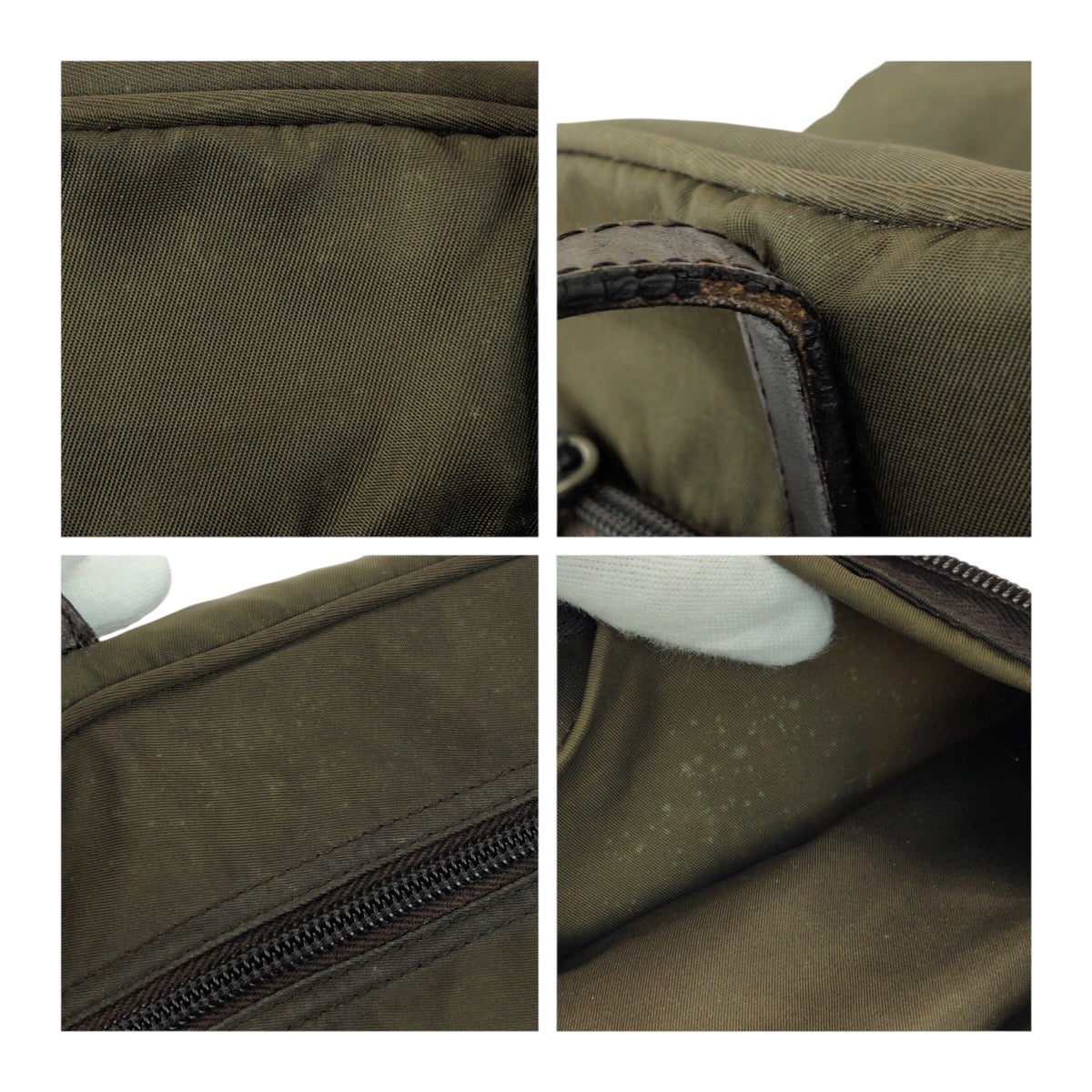 20511 PRADA プラダ テスート 三角ロゴプレート カーキ ブラウン シルバー金具 ナイロン / レザー トートバッグ ミニボストンバッグ レディース B12