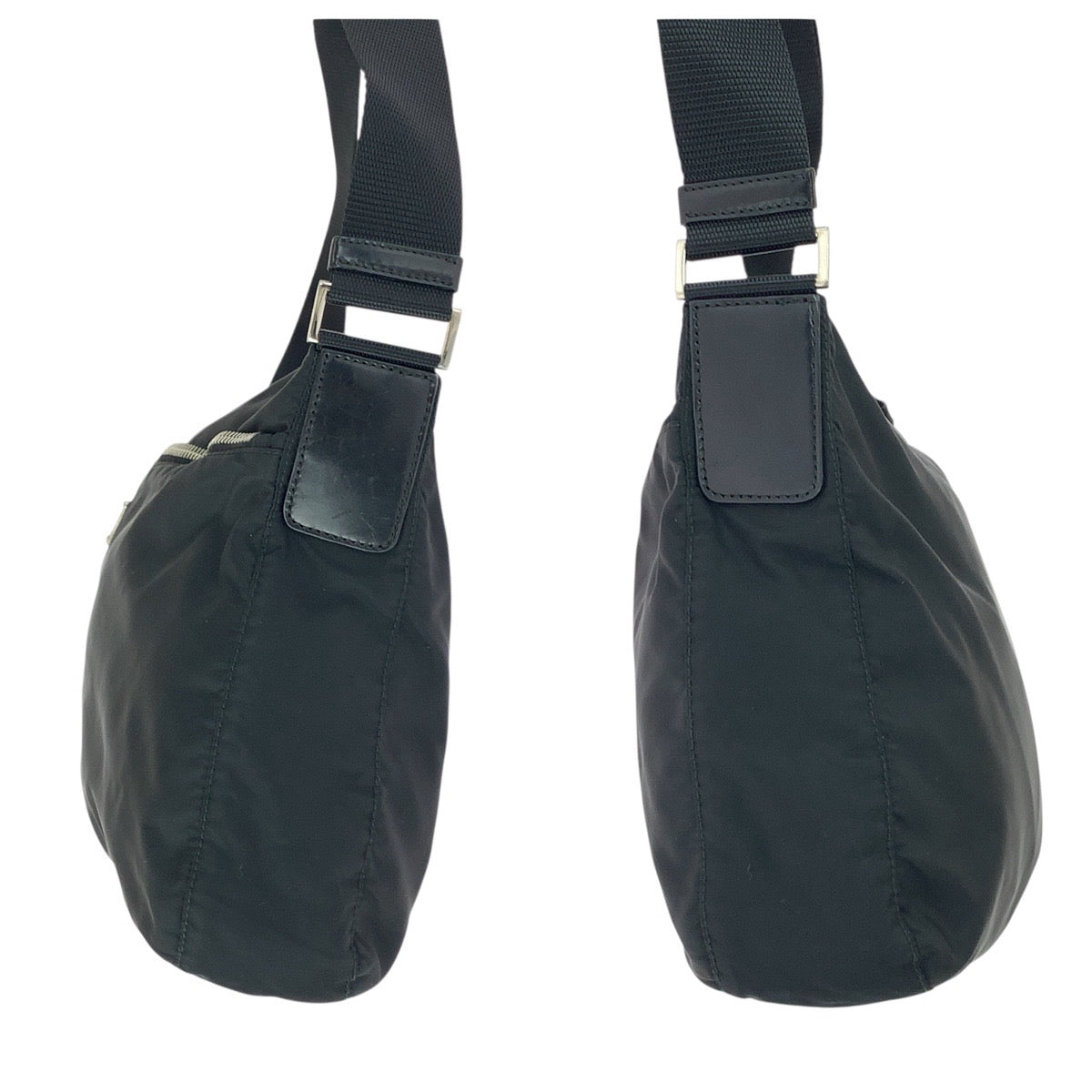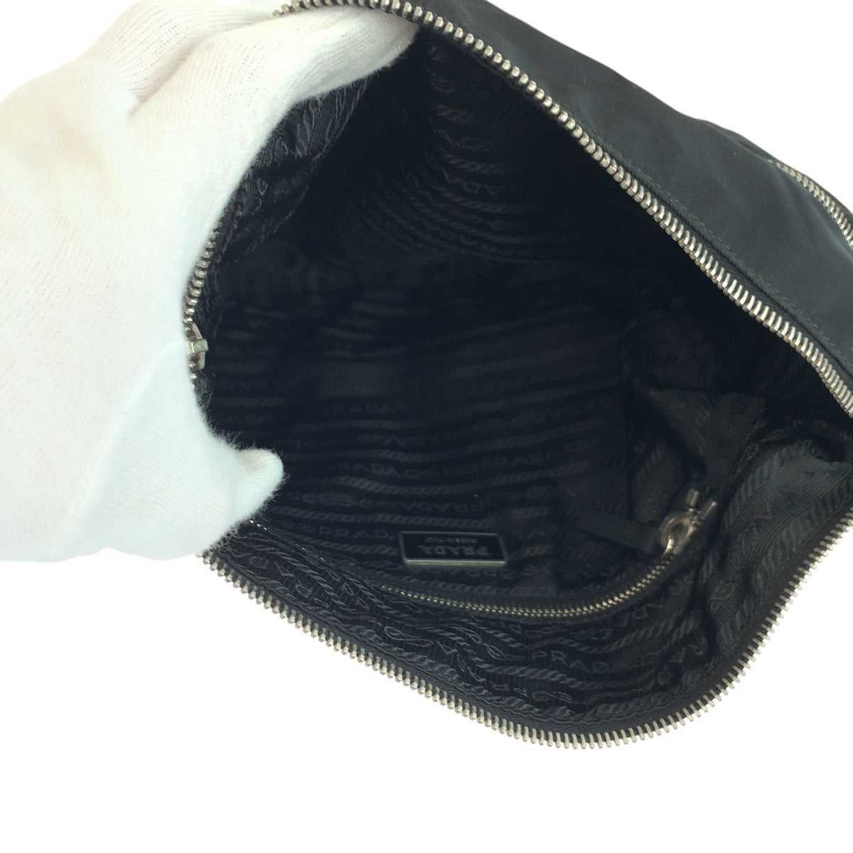 20544 PRADA プラダ テスート 三角ロゴプレート ブラック 黒 シルバー金具 ナイロン / レザー ショルダーバッグ ポシェット レディース ABP42