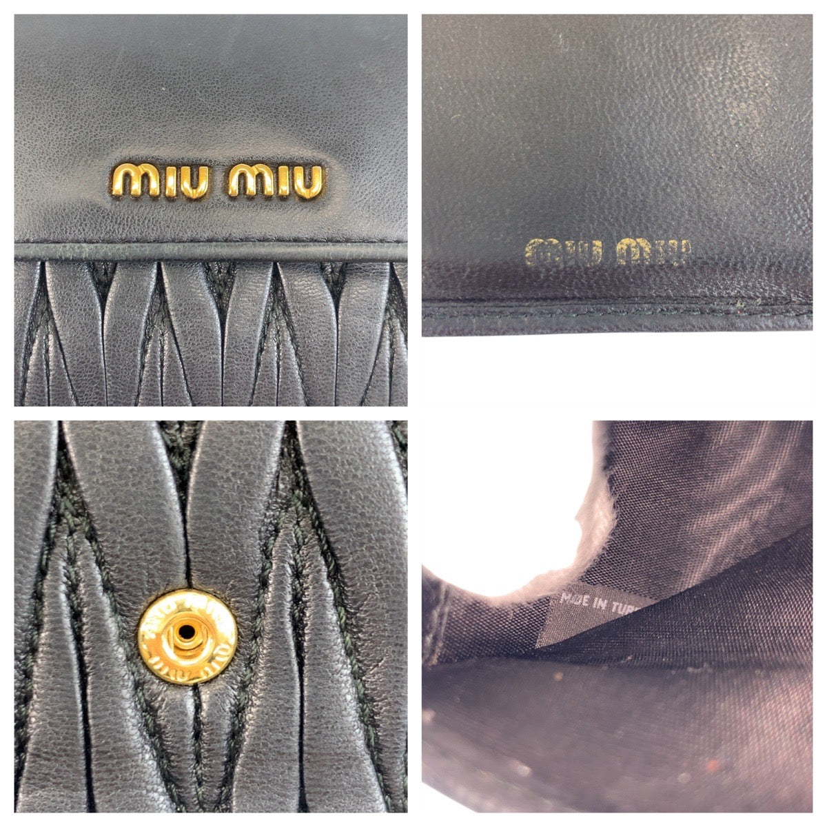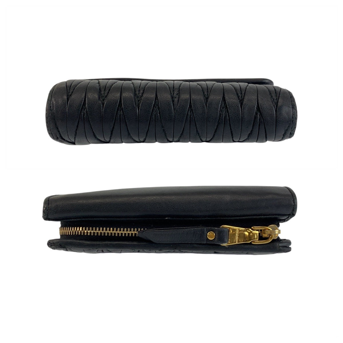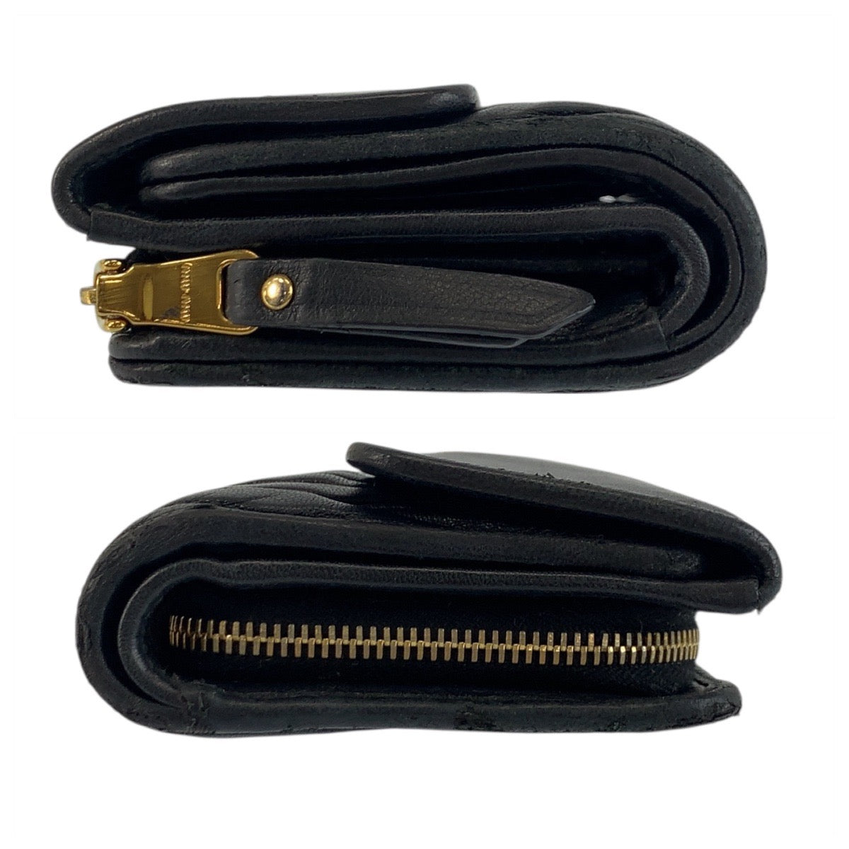20594 MIUMIU ミュウミュウ マテラッセ ブラック 黒 ゴールド金具 レザー 折り財布 コンパクトウォレット レディース AB14