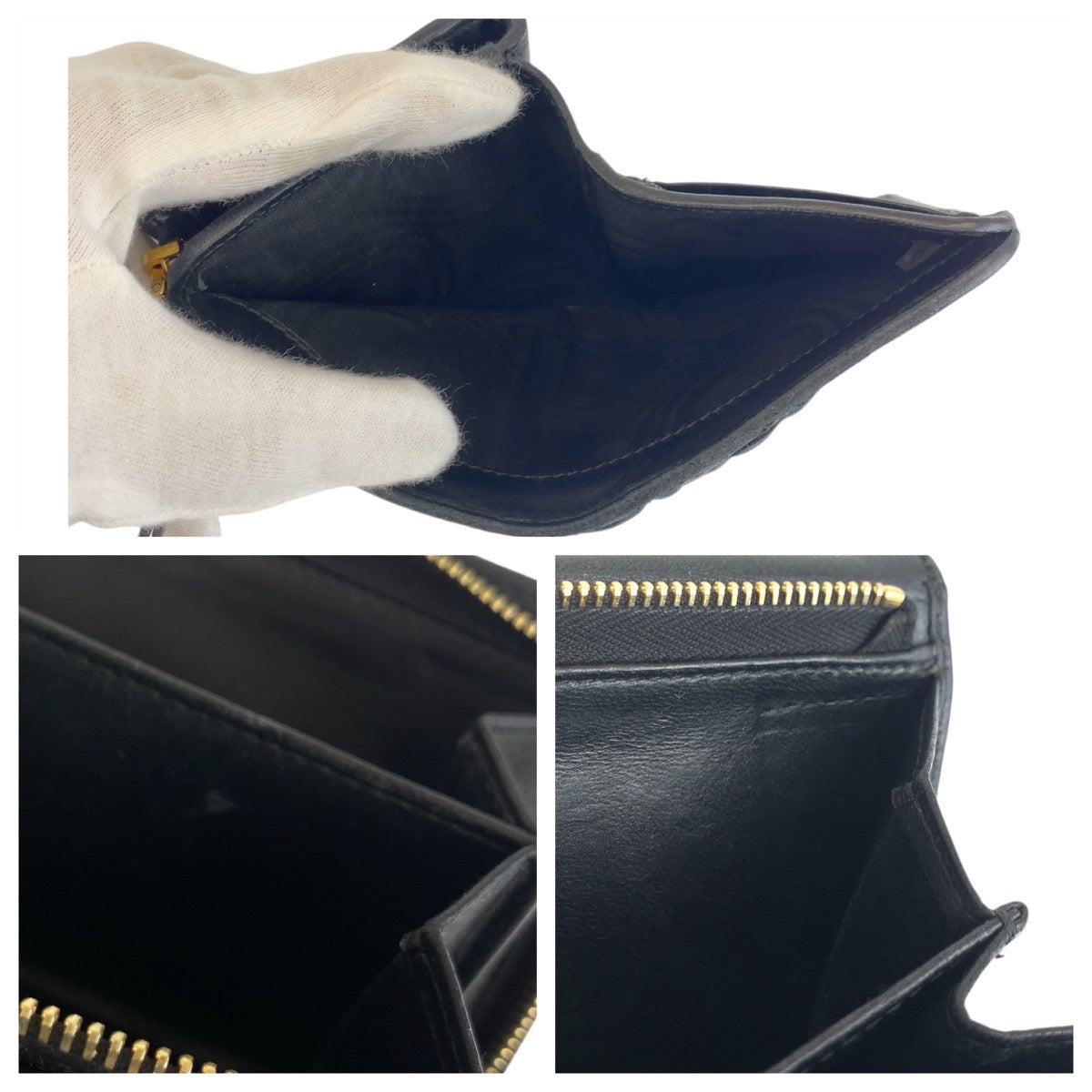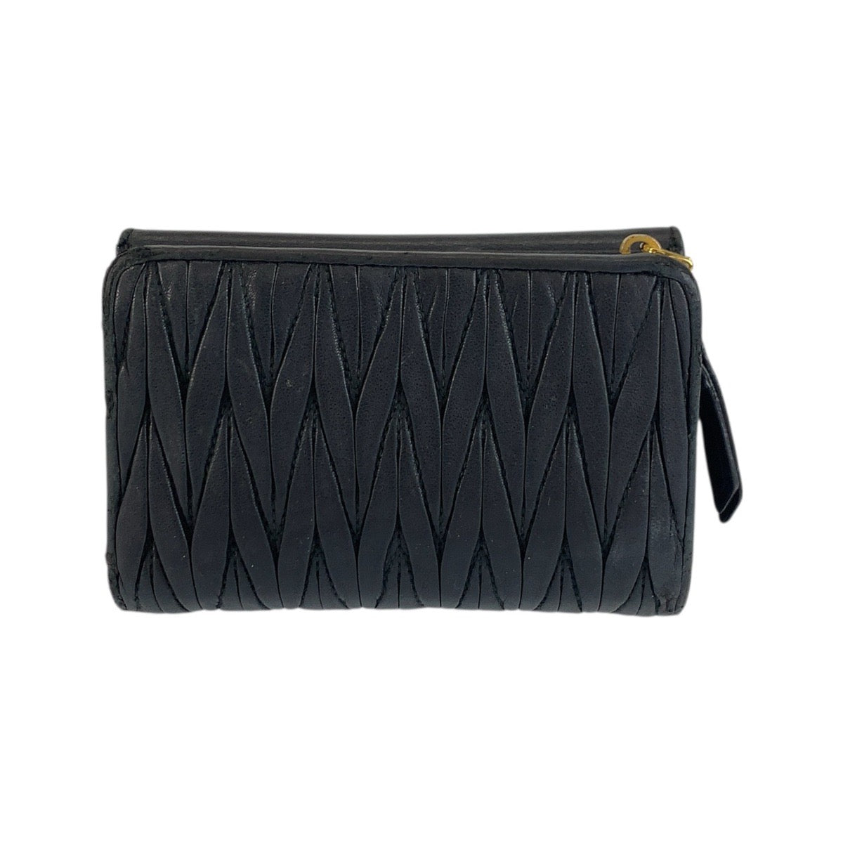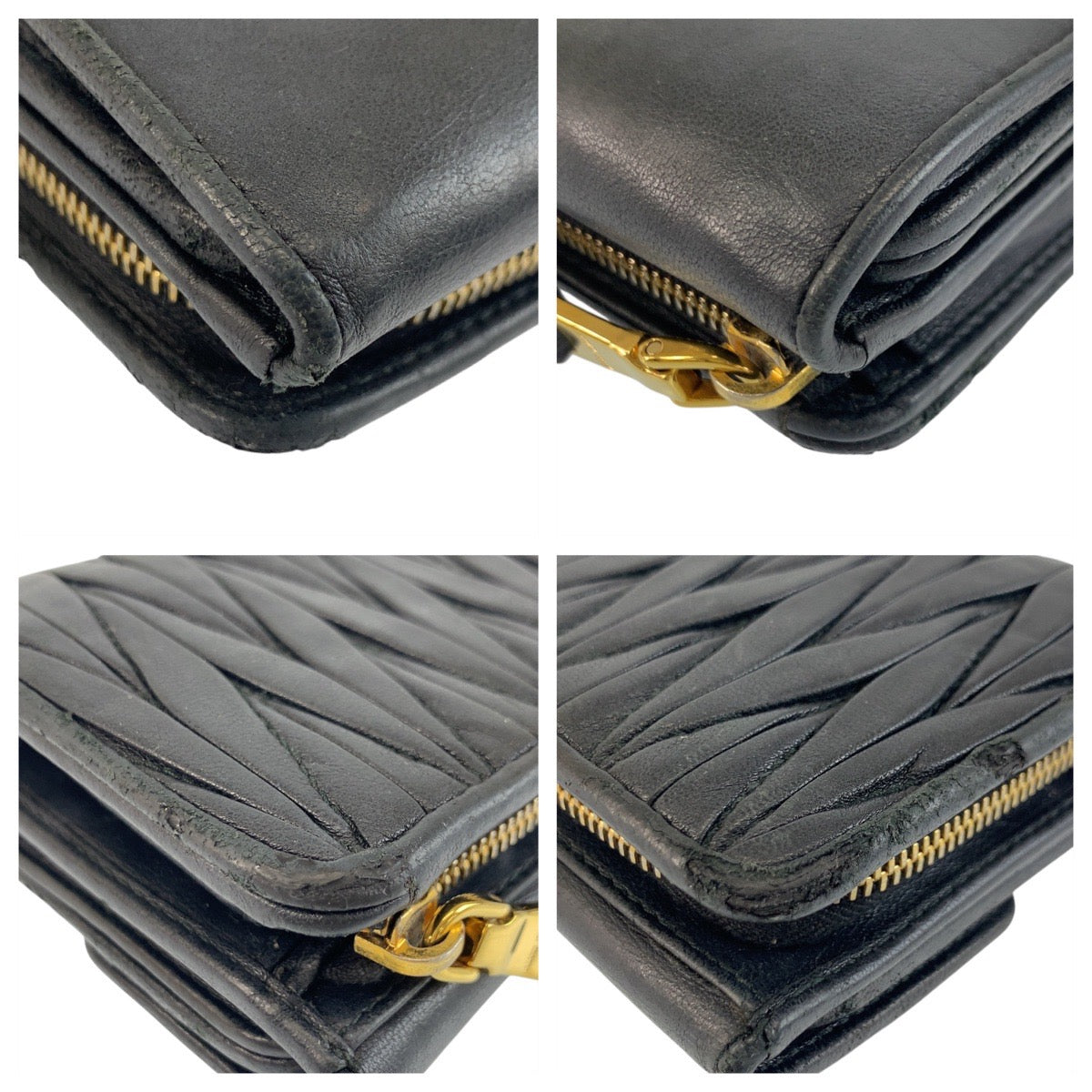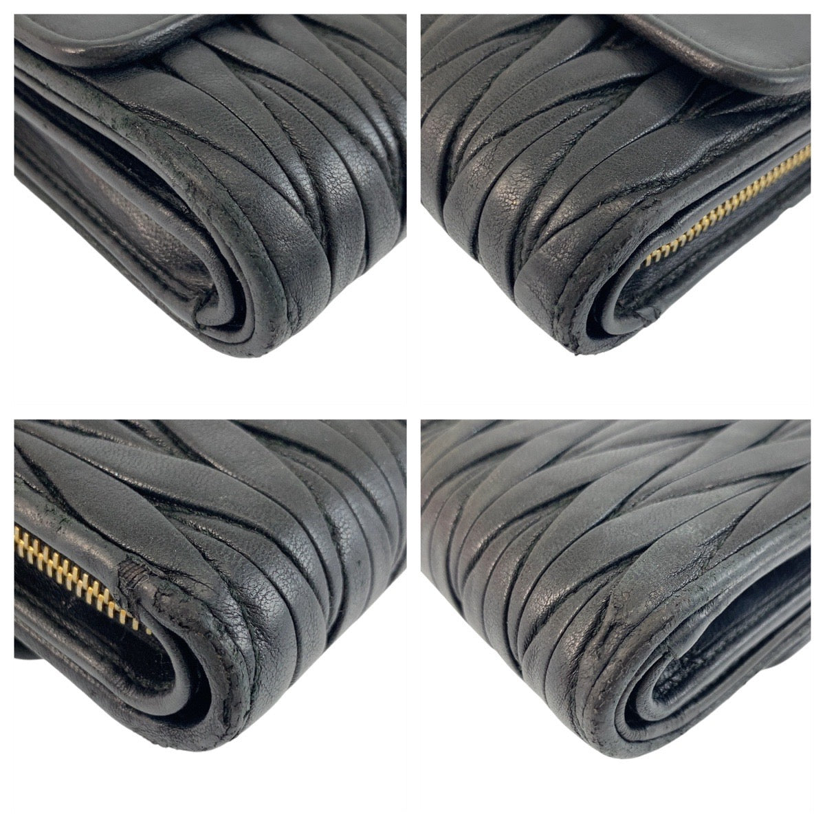 20594 MIUMIU ミュウミュウ マテラッセ ブラック 黒 ゴールド金具 レザー 折り財布 コンパクトウォレット レディース AB14