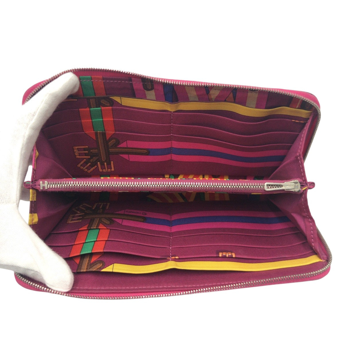 20697 HERMES エルメス アザップロング シルクイン ピンク ローズティリアン シルバー金具 ヴォーエプソン 長財布 ロングウォレット ラウンドファスナー □P刻印 レディース AB44