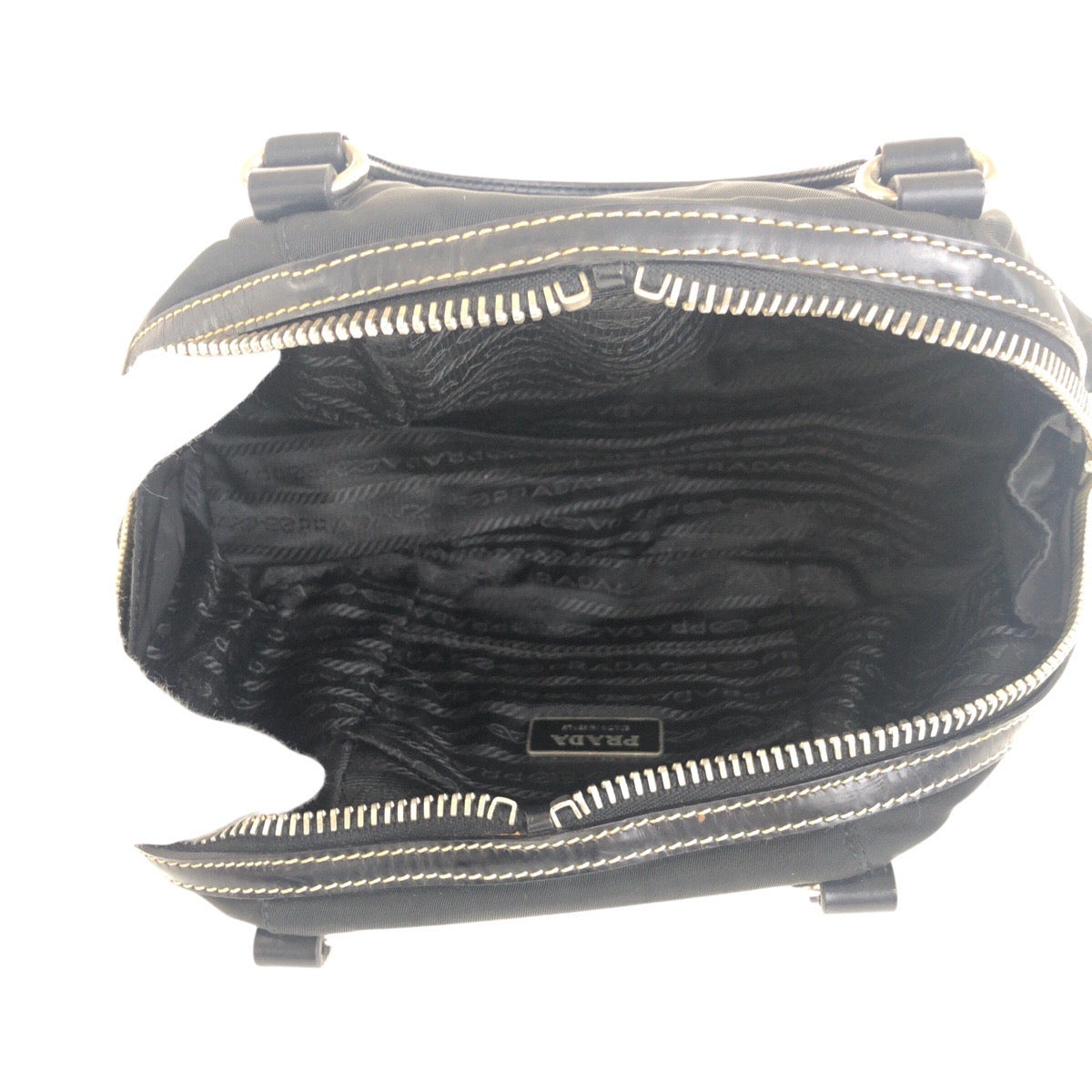 20825 PRADA プラダ テスート 三角ロゴプレート ブラック 黒 シルバー金具 ナイロン / レザー ハンドバッグ ミニボストンバッグ レディース AB31