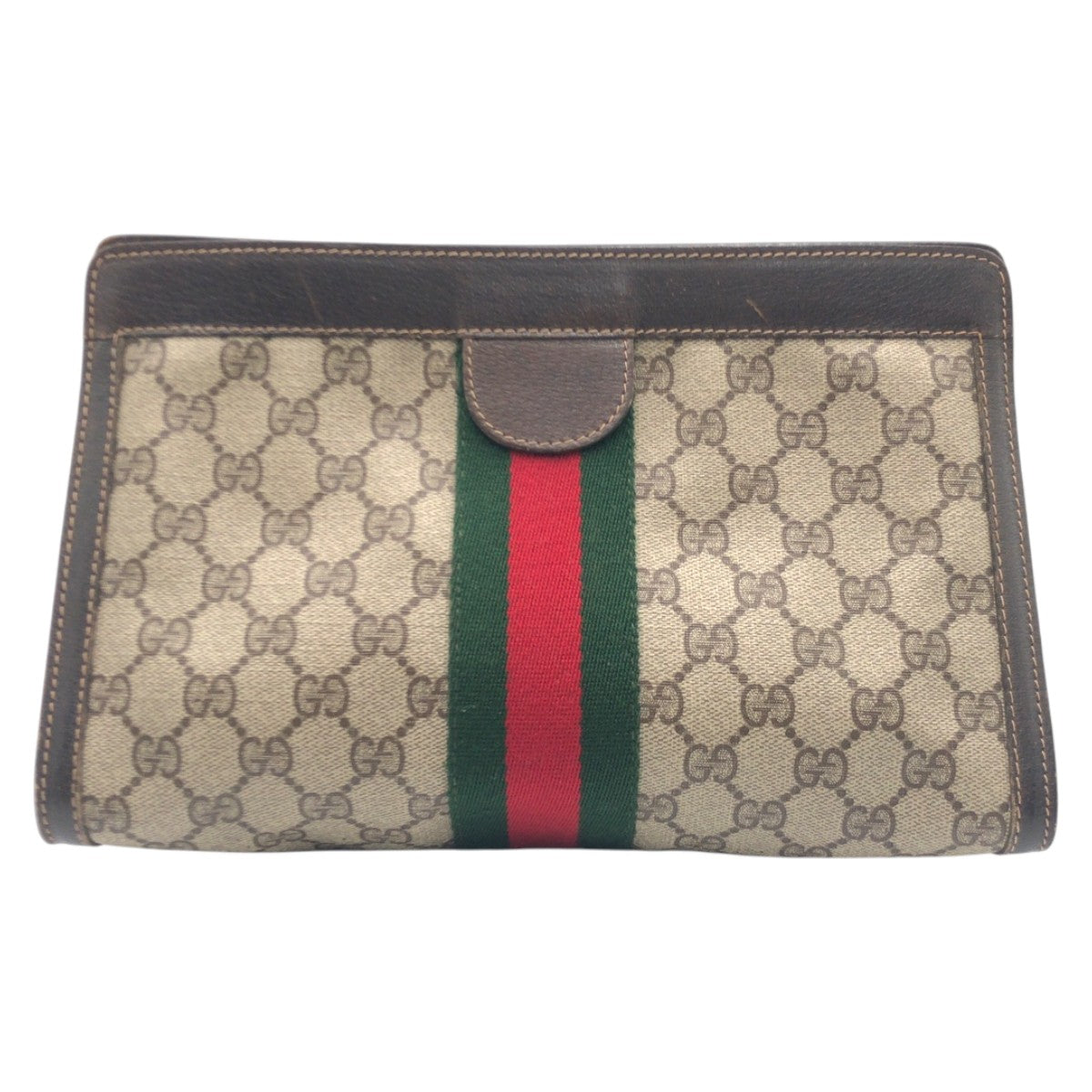 20849 GUCCI グッチ ヴィンテージ シェリーライン ブラウン PVC / レザー 41 014 クラッチバッグ セカンドバッグ 男女兼用 メンズ AB16