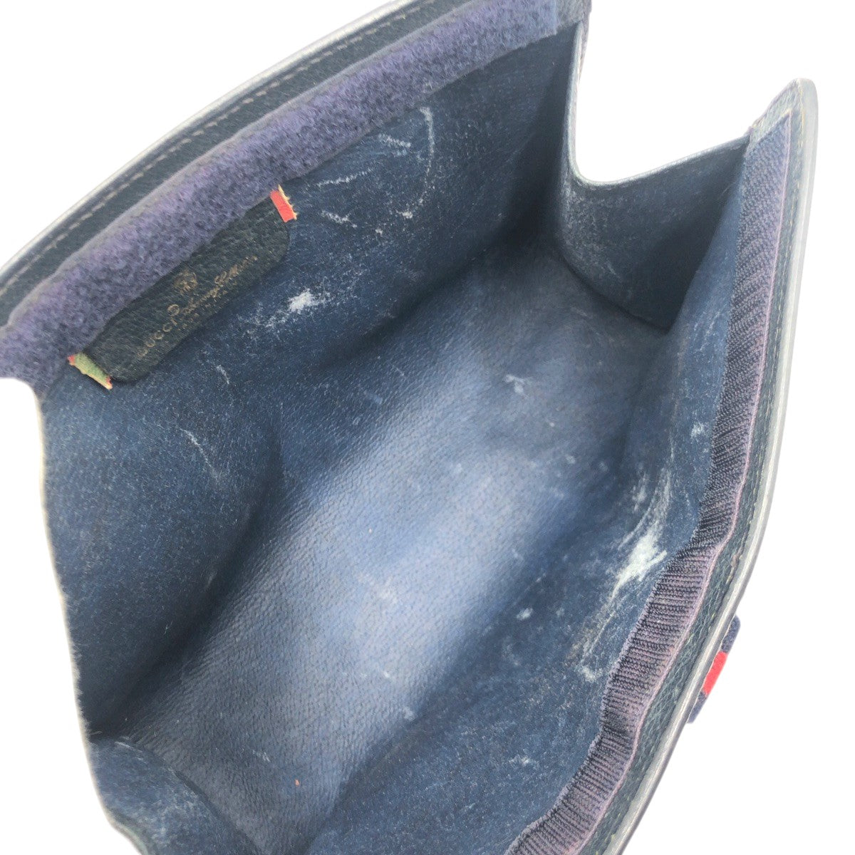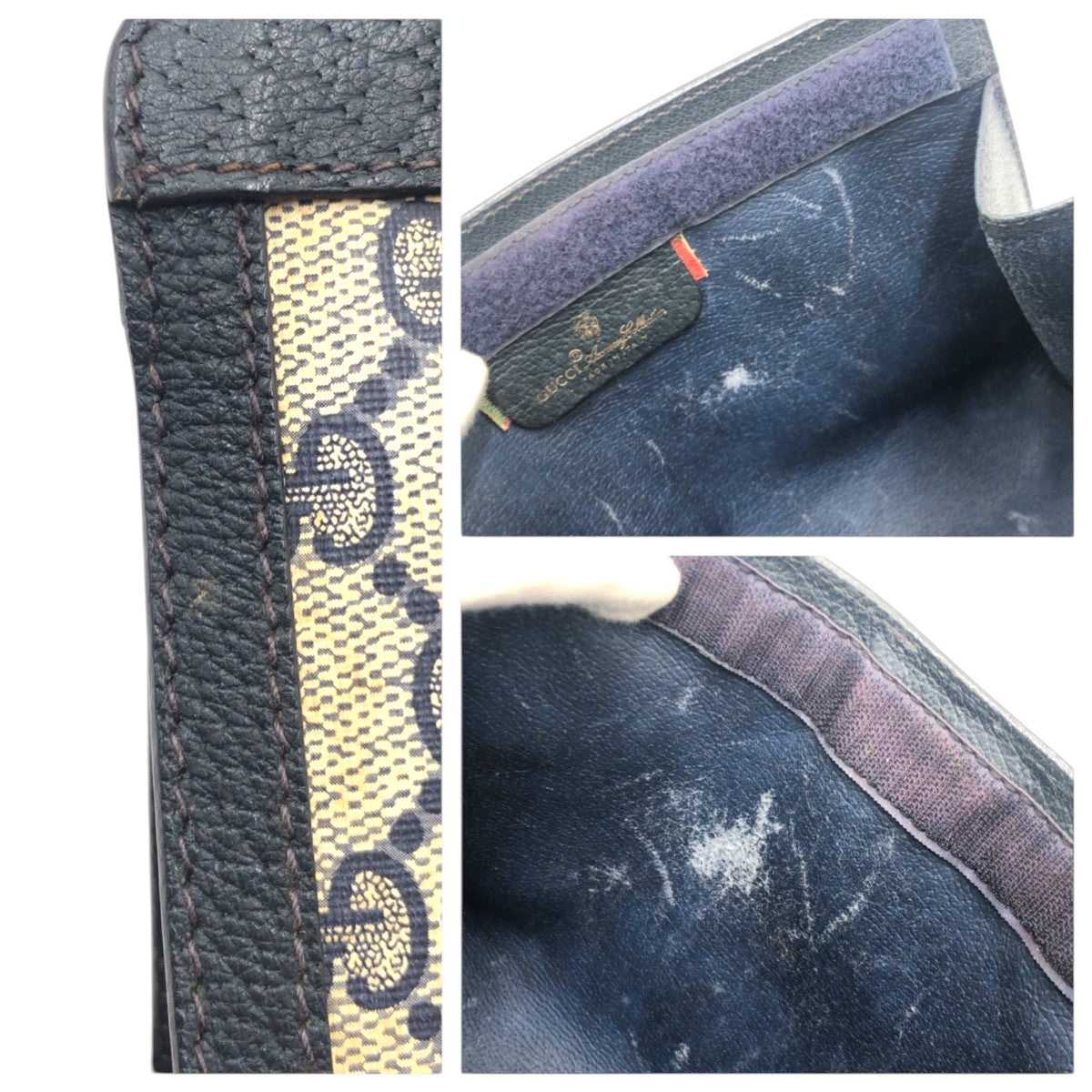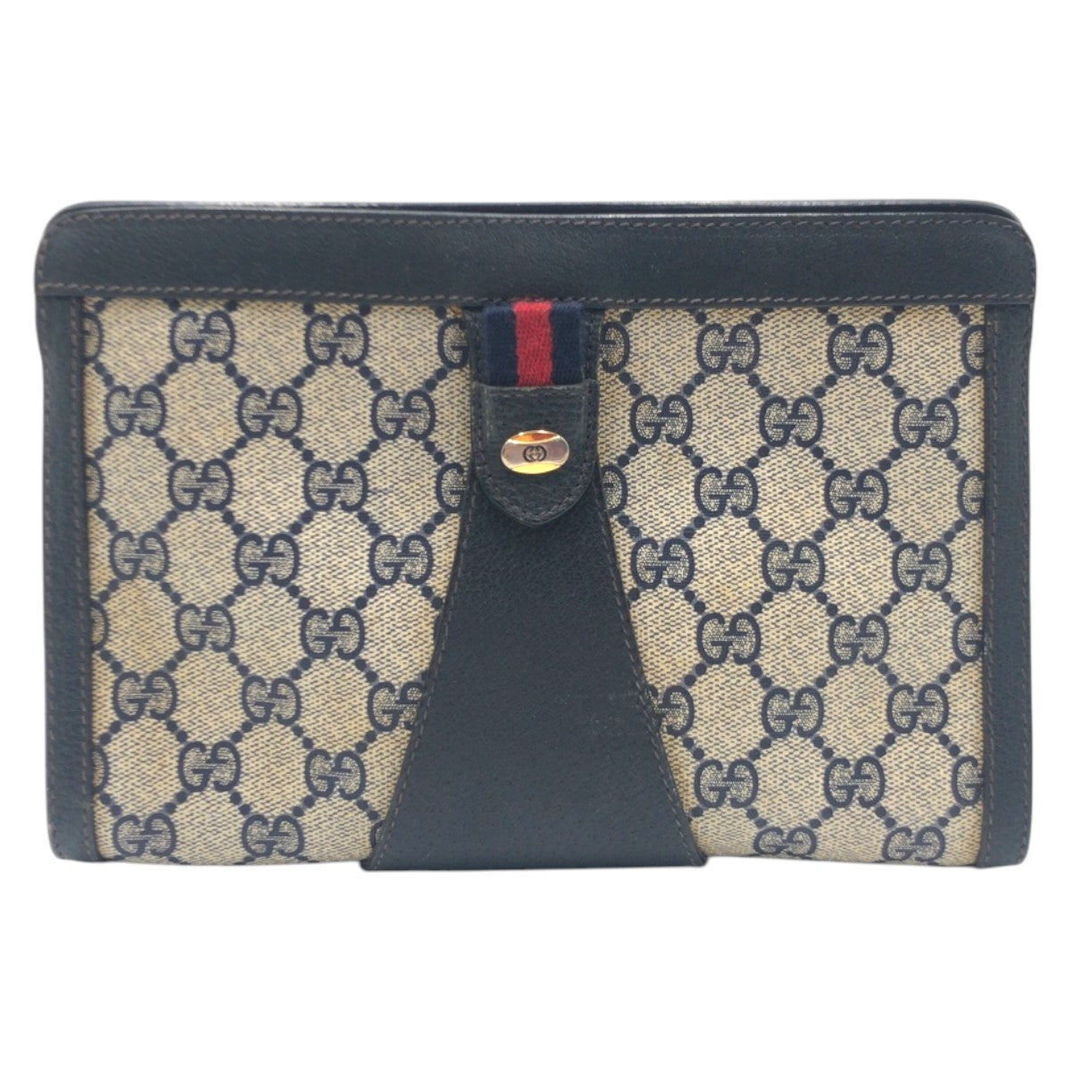 20855 GUCCI グッチ ヴィンテージ シャリーライン オールドグッチ ネイビー ベージュ PVC 89.01 クラッチバッグ セカンドバッグ 男女兼用 メンズ AB16