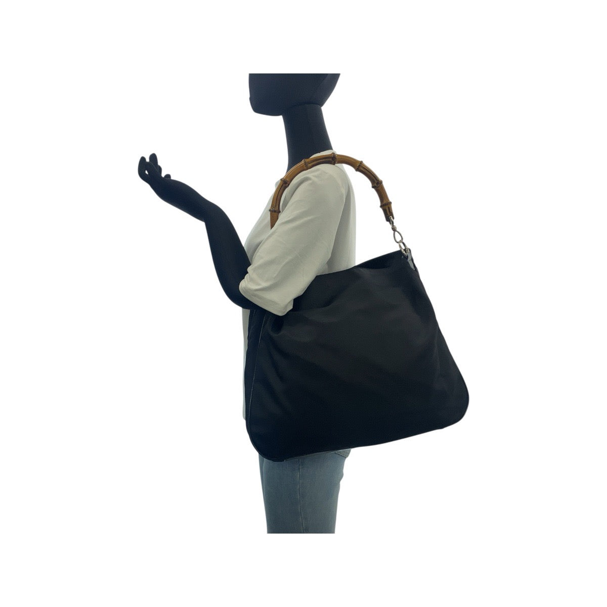 20861 GUCCI グッチ バンブー ブラック 黒 シルバー金具 キャンバス 001.1998.1577 ショルダーバッグ ハンドバッグ レディース ABP35