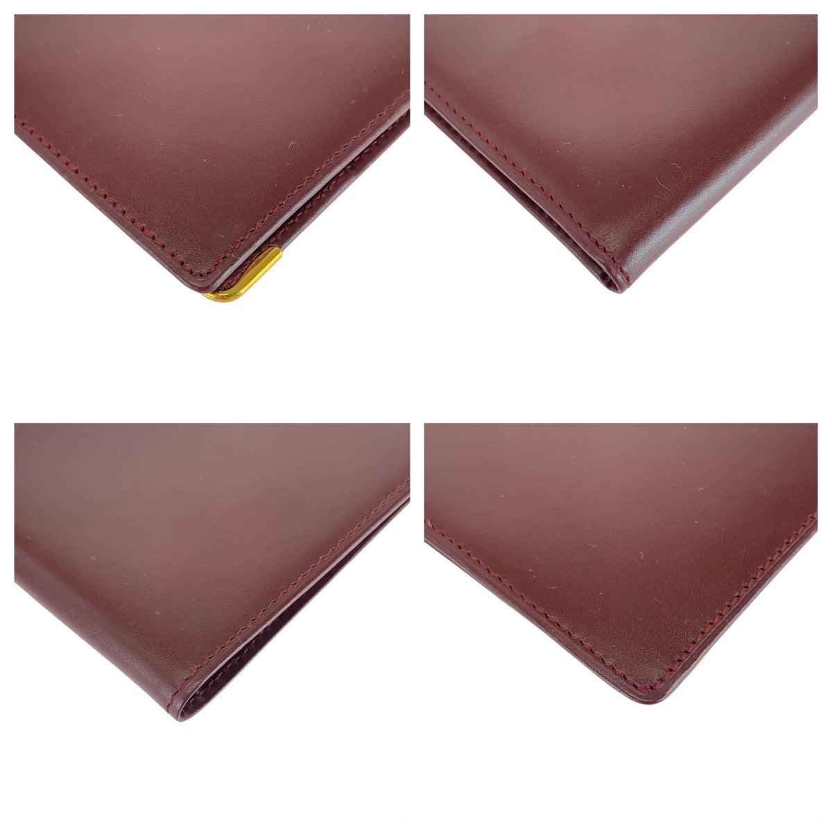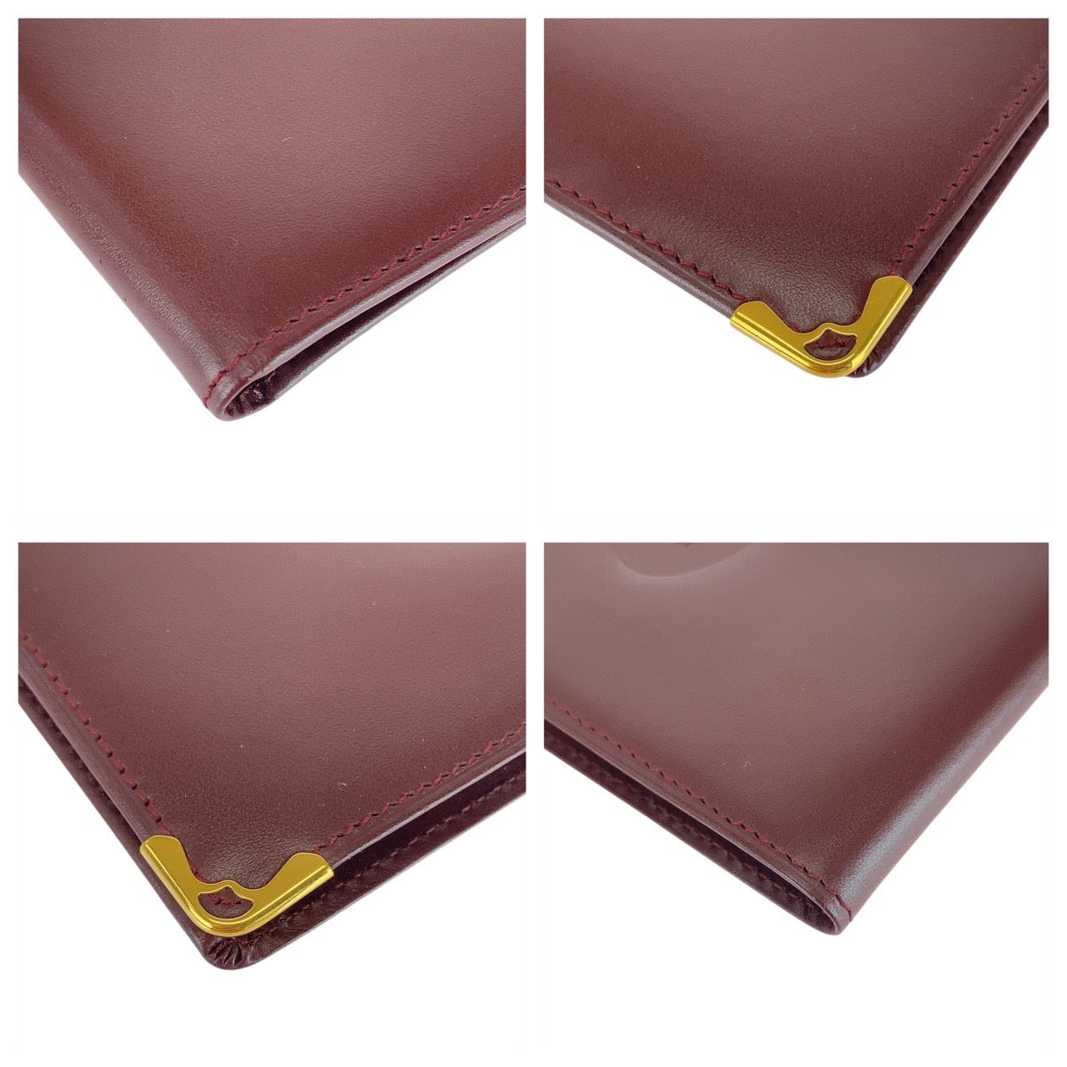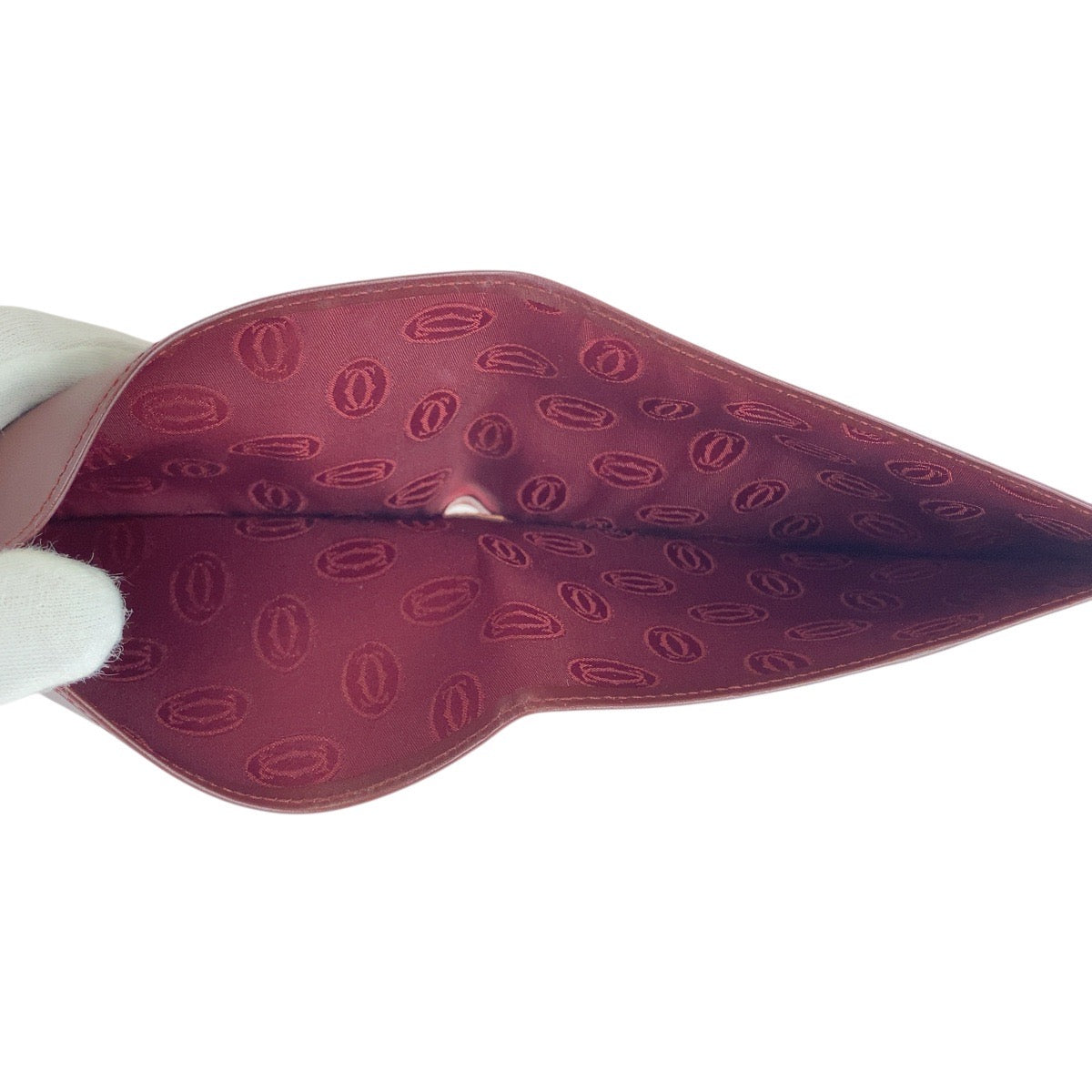 20873 CARTIER カルティエ マストライン ワインレッド ボルドー ゴールド金具 レザー 札入れ 折り財布 コンパクトウォレット レディース A14