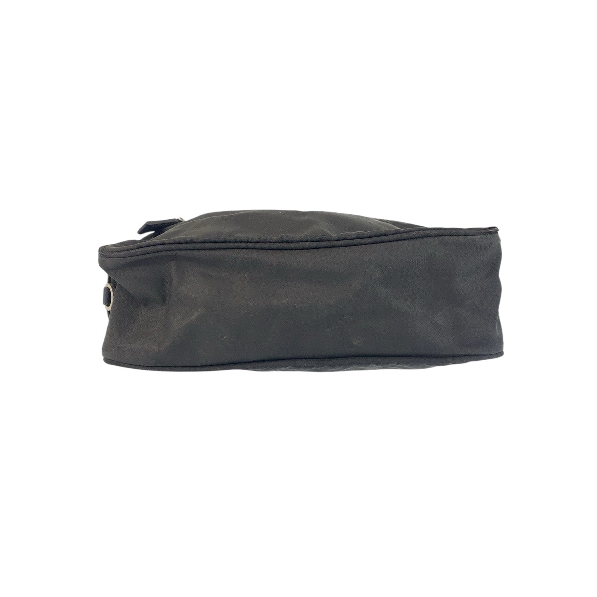 20894 PRADA プラダ テスート 三角ロゴプレート ブラック 黒 シルバー金具 ナイロン / レザー ショルダーバッグ ポシェット レディース AB23