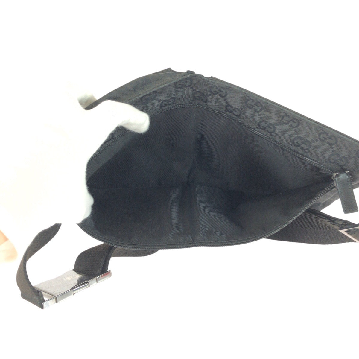 20897 GUCCI グッチ ブラック 黒 シルバー金具 GGキャンバス / レザー 28566 ボディバッグ ウエストバッグ レディース AB35