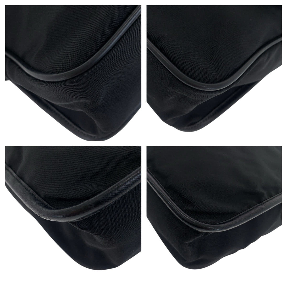 20930 PRADA プラダ テスート サフィアーノ 三角ロゴプレート ブラック 黒 シルバー金具 ナイロン / レザー ショルダーバッグ ポシェット レディース A42