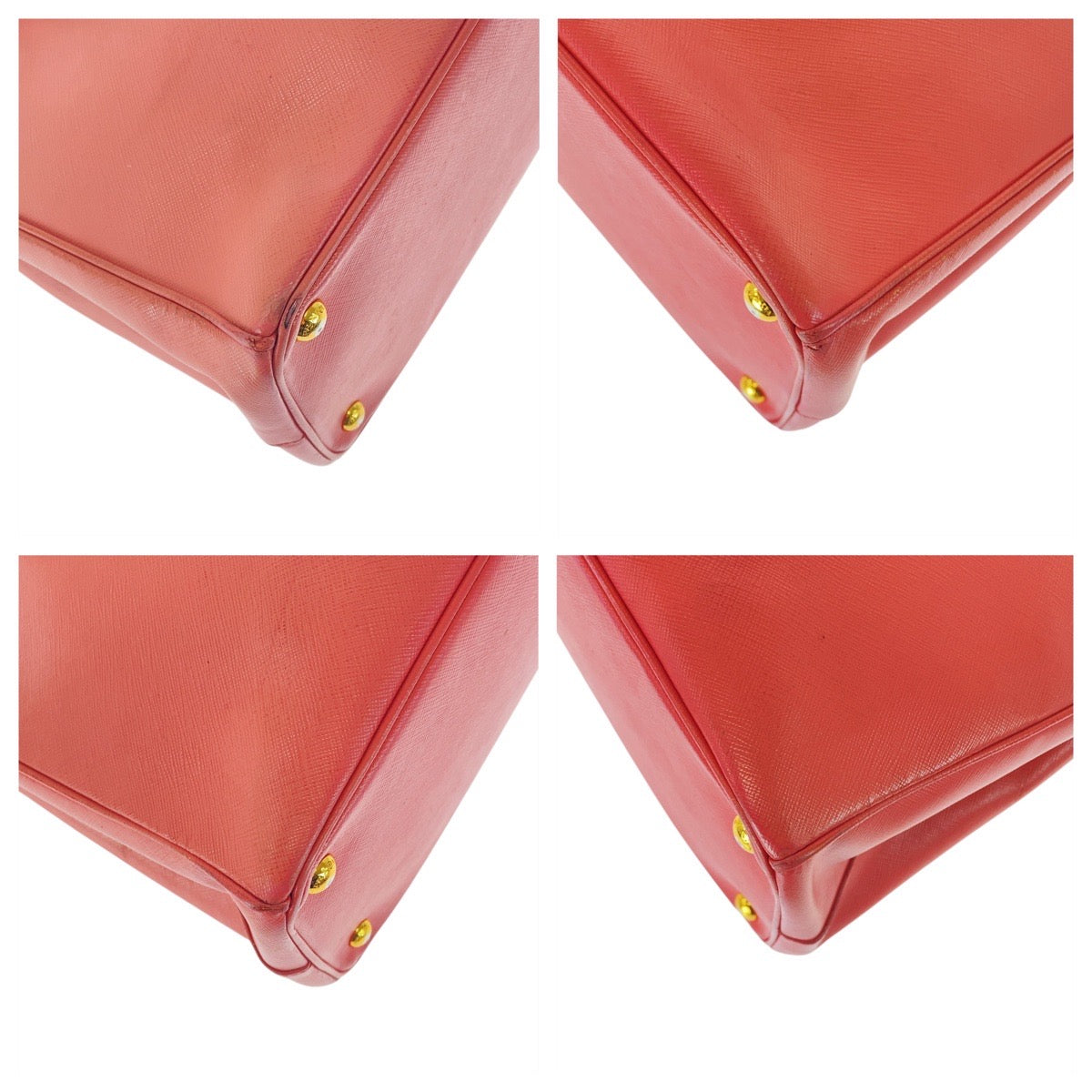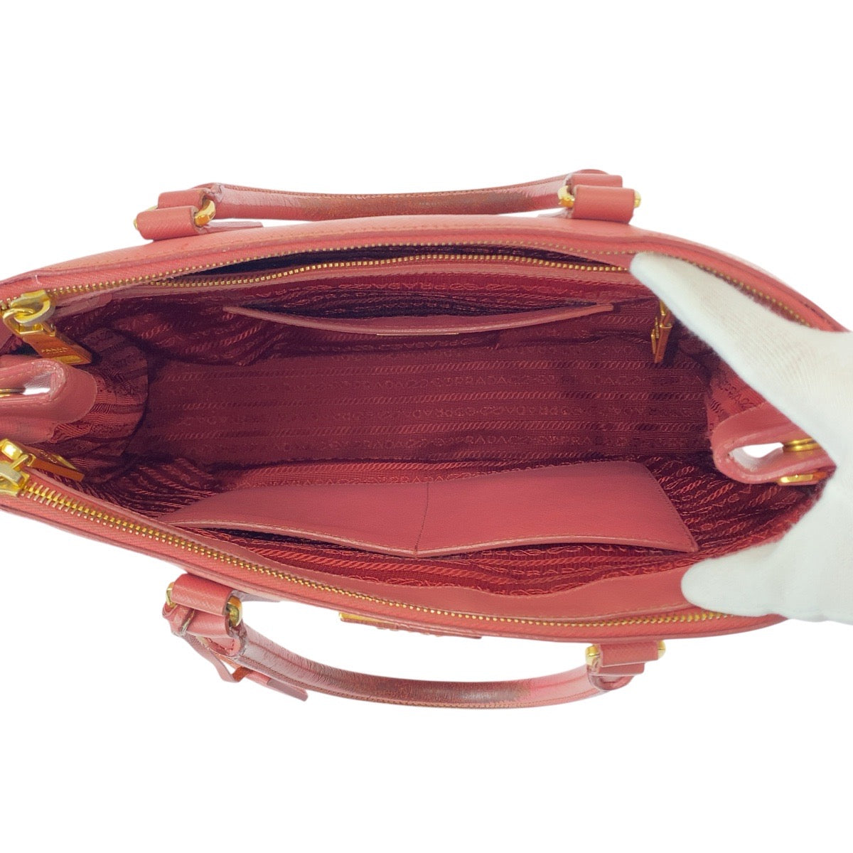 20950 PRADA プラダ ガレリア サフィアーノ 三角ロゴプレート ピンク ゴールド金具 レザー トートバッグ ハンドバッグ レディース AB35