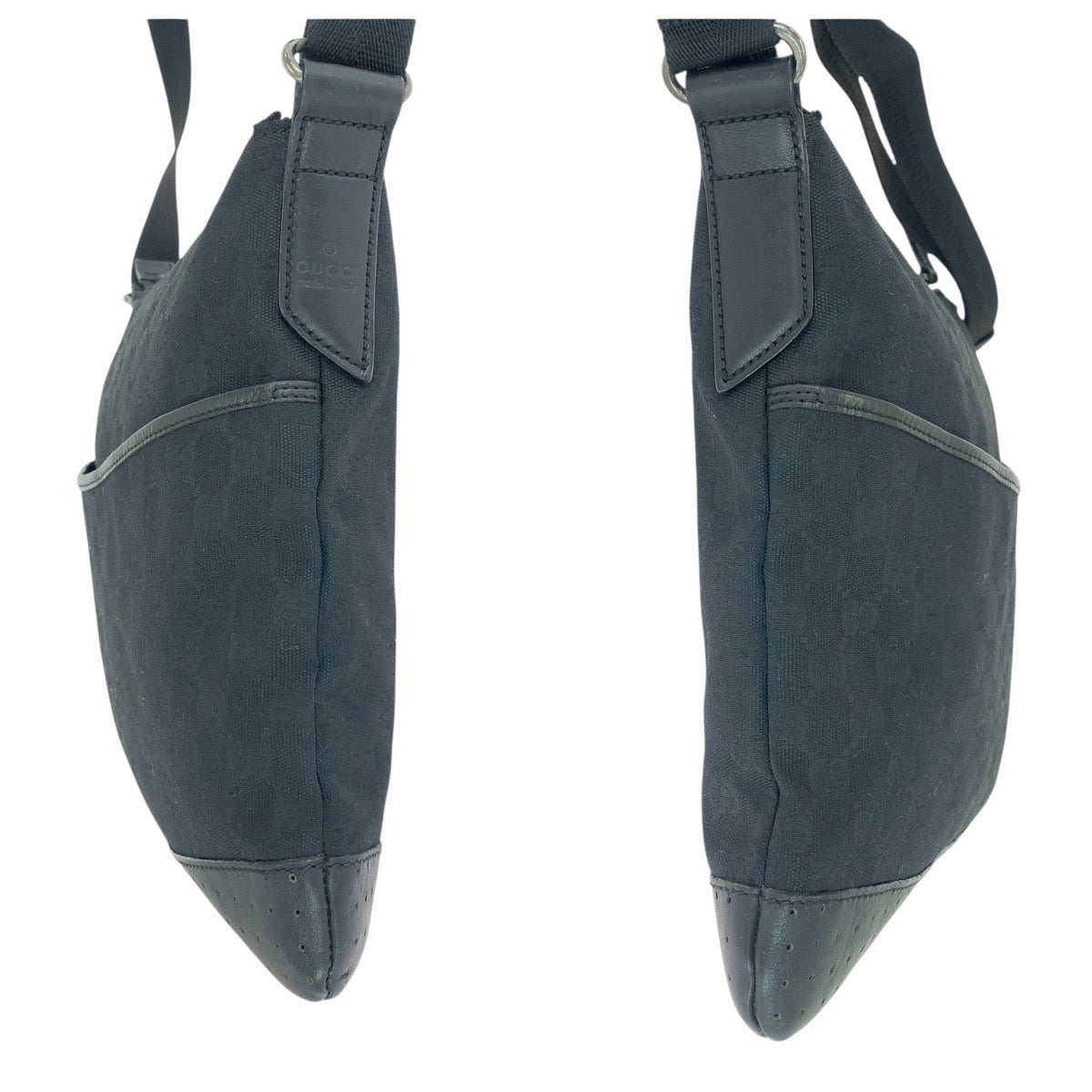 20954 GUCCI グッチ ブラック 黒 シルバー金具 GGキャンバス / レザー 145857 ショルダーバッグ ポシェット レディース AB28