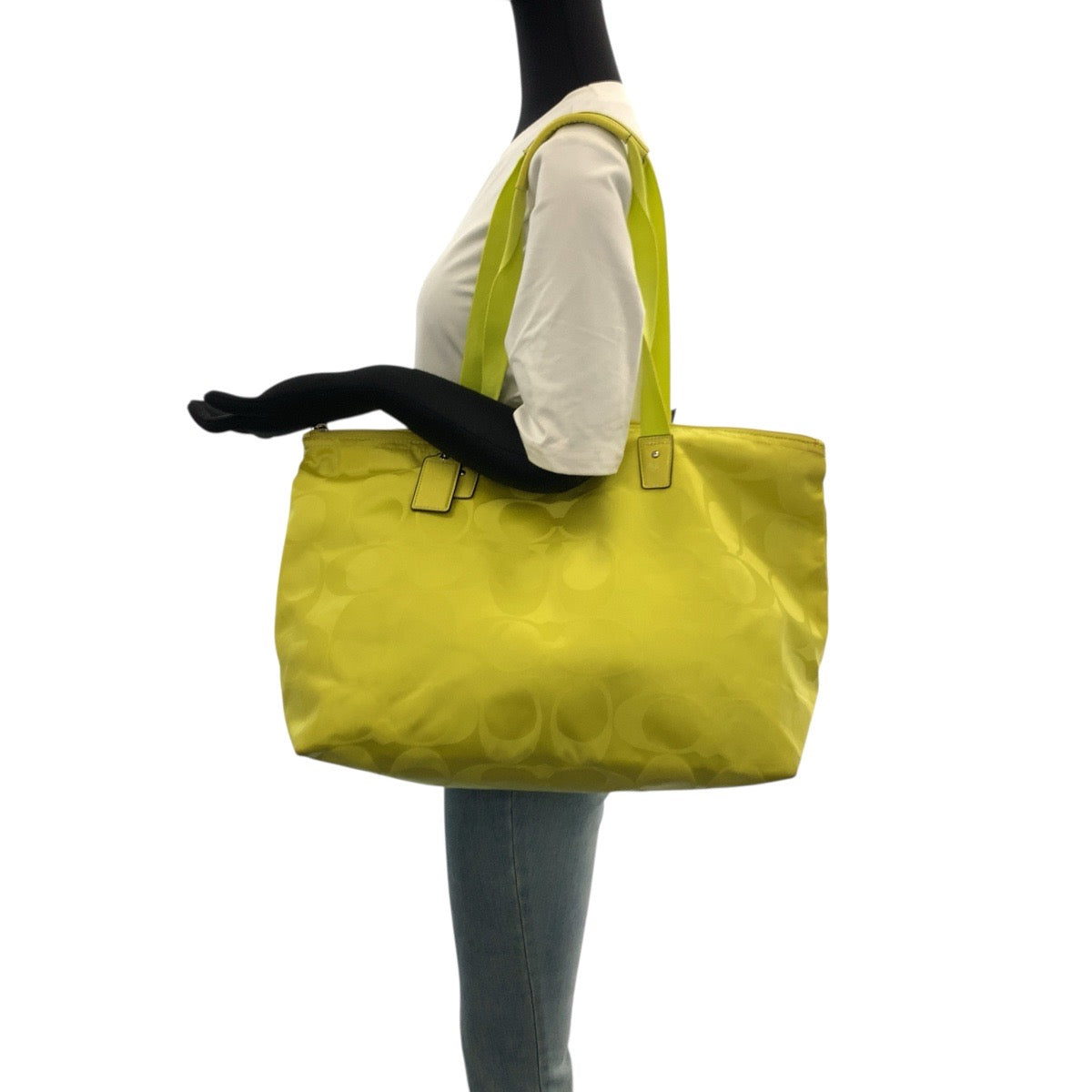 20964 COACH コーチ シグネチャー イエロー シルバー金具 ナイロン / レザー トートバッグ ショルダーバッグ レディース AB8
