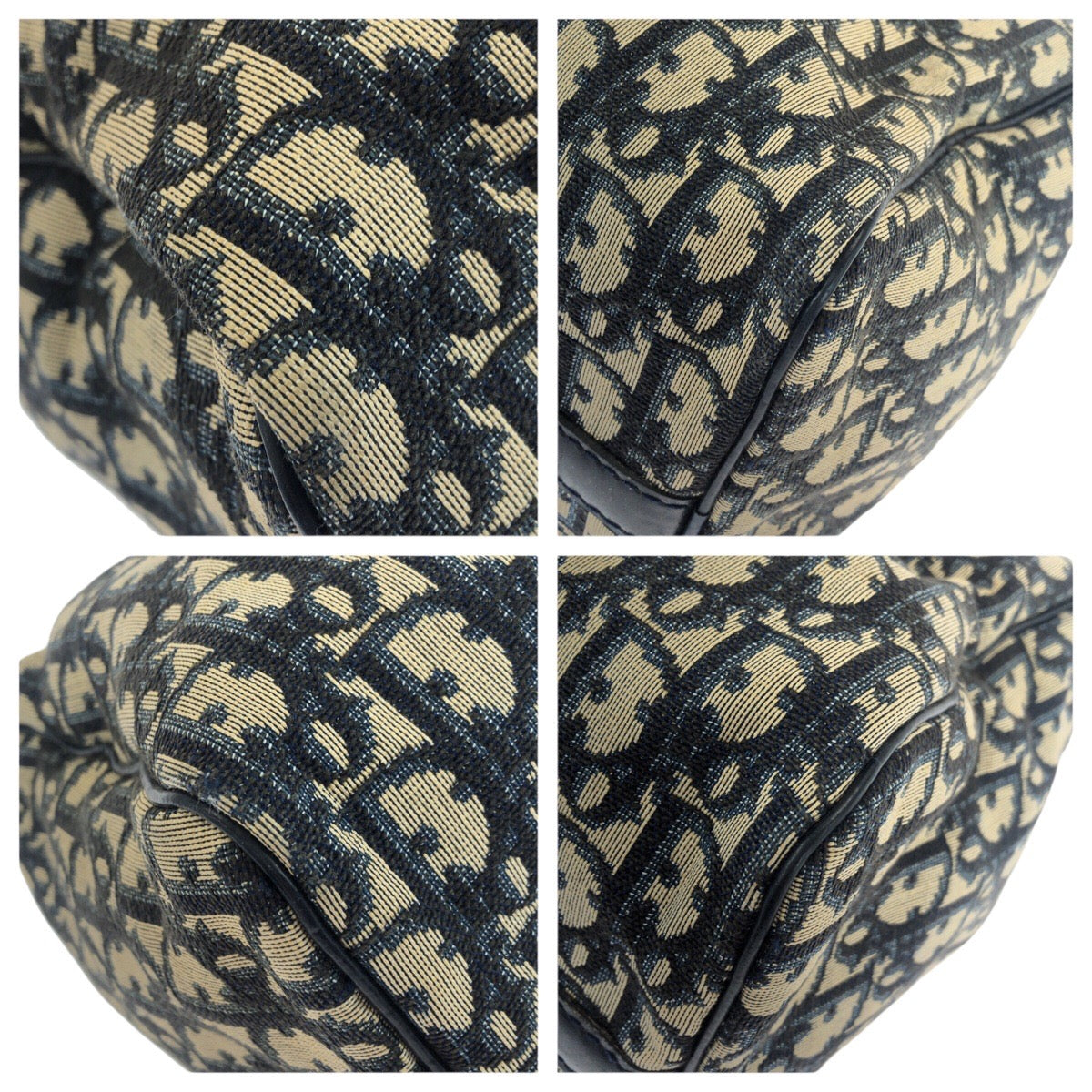 20968 Dior ディオール ヴィンテージ トロッター ネイビー ベージュ シルバー金具 キャンバス / レザー トートバッグ ミニボストンバッグ レディース ABP42