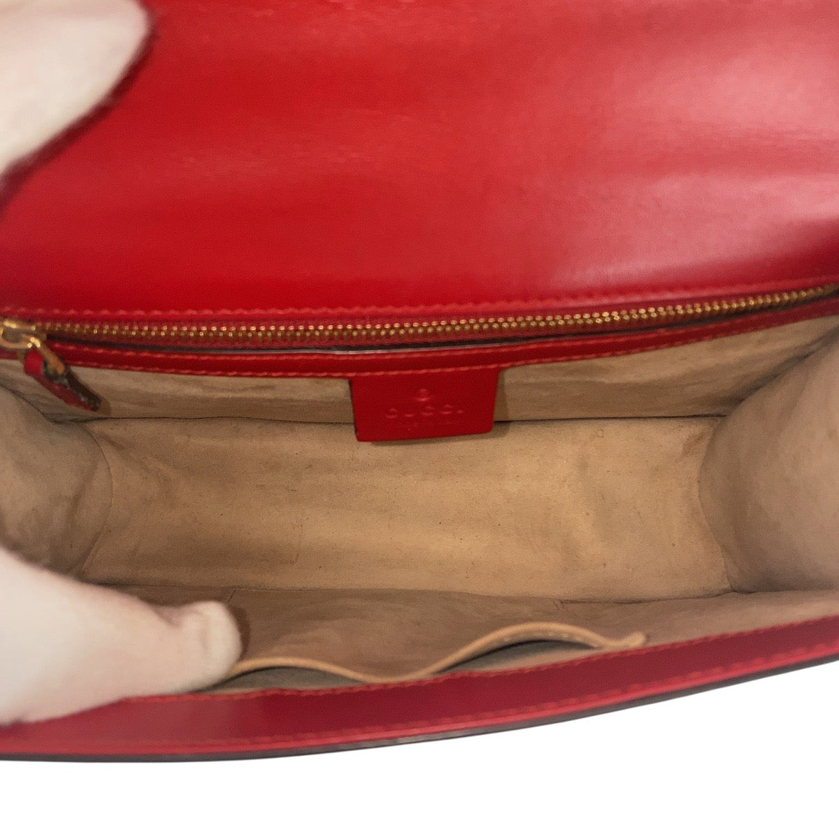 20973 GUCCI グッチ シルヴィ スモール ウェブライン レッド ゴールド金具 レザー 421882 ショルダーバッグ ポシェット レディース AB60
