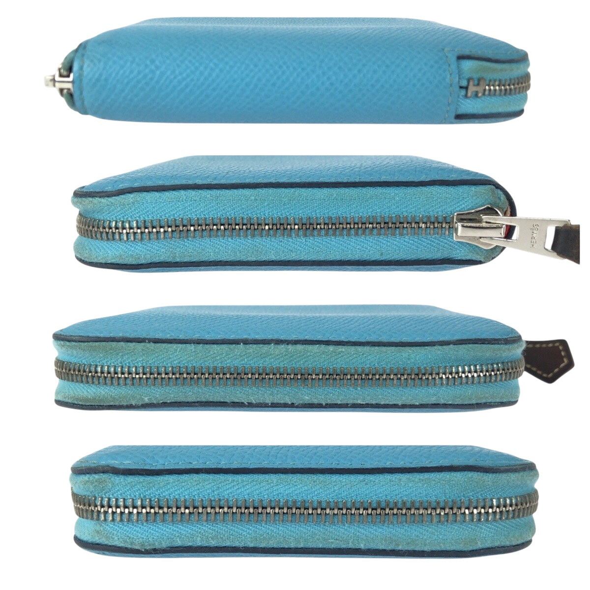 21019 HERMES エルメス アザップ コンパクト シルクイン ブルー シルバー金具 レザー / シルク 折財布 コインケース 小銭入れ D刻印 レディース AB38