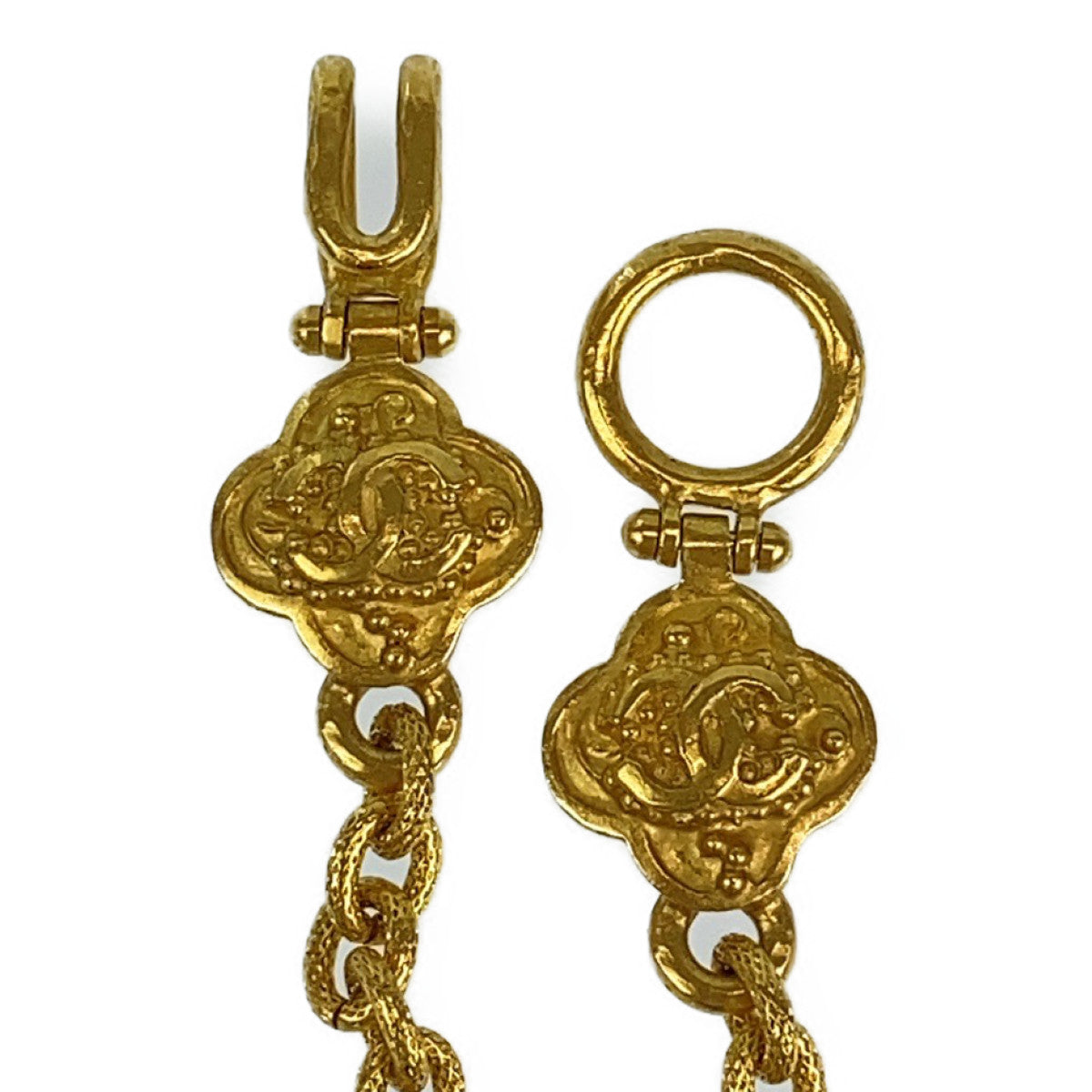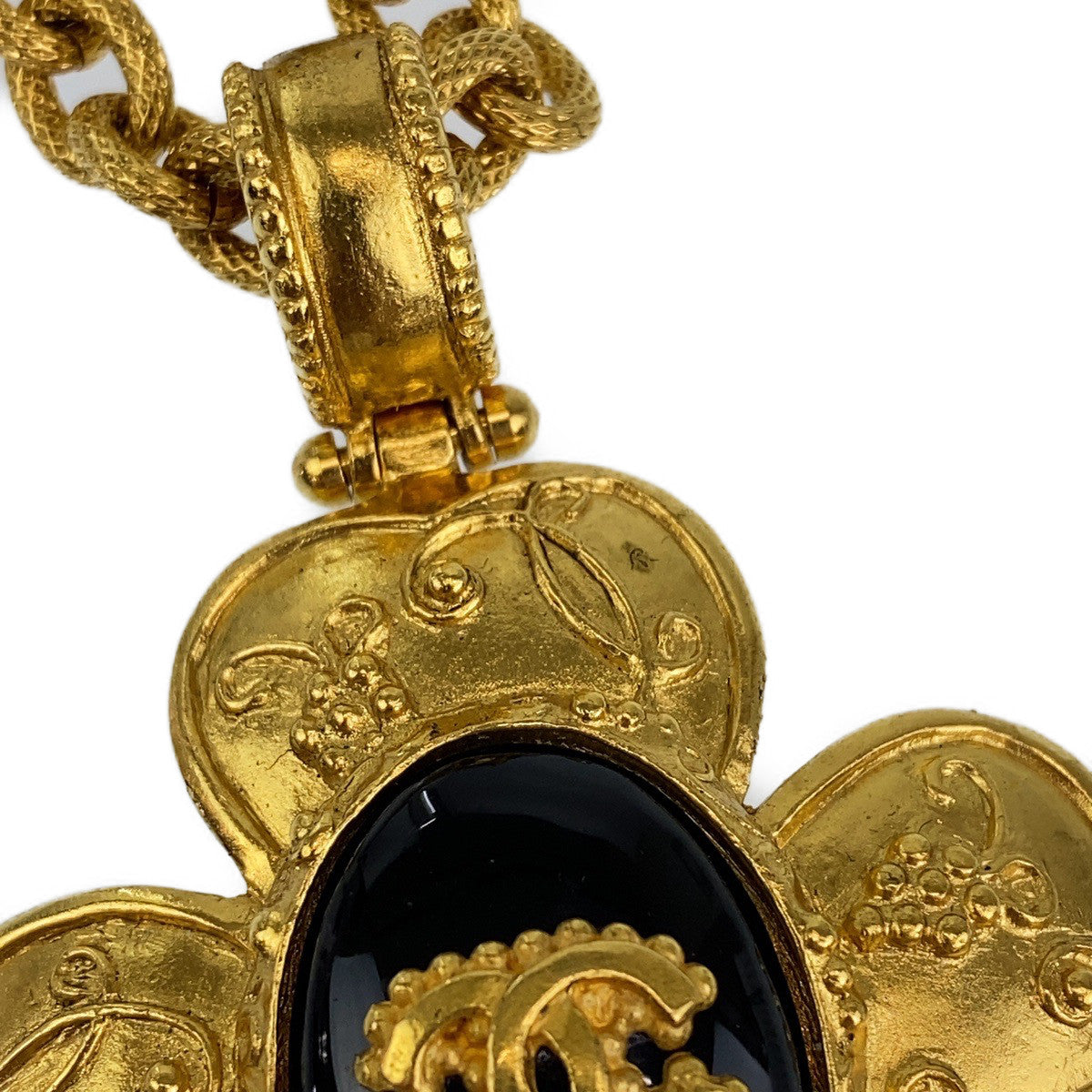 21046 CHANEL シャネル ヴィンテージ グリポア 天然石 ココマーク フラワー ゴールド ブラック メッキ ネックレス ペンダント レディース A
