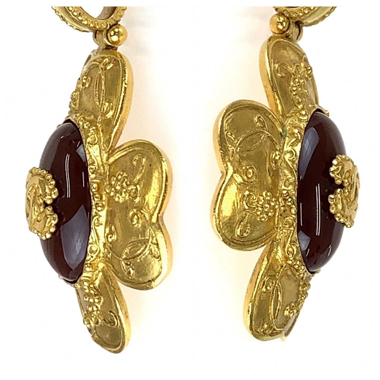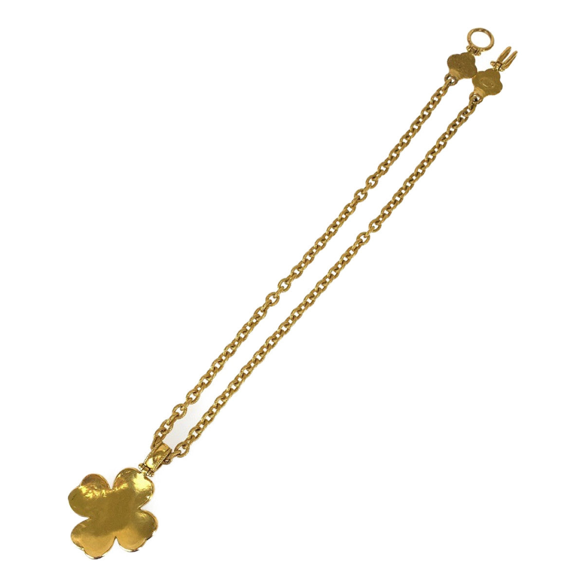 21047 CHANEL シャネル ヴィンテージ グリポア ココマーク ストーン フラワー ゴールド ワインレッド メッキ ネックレス ペンダント レディース A