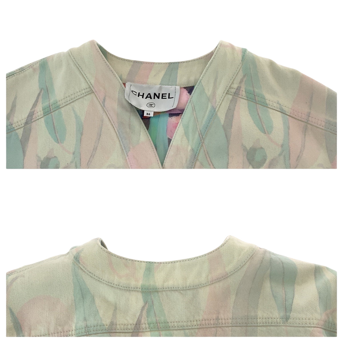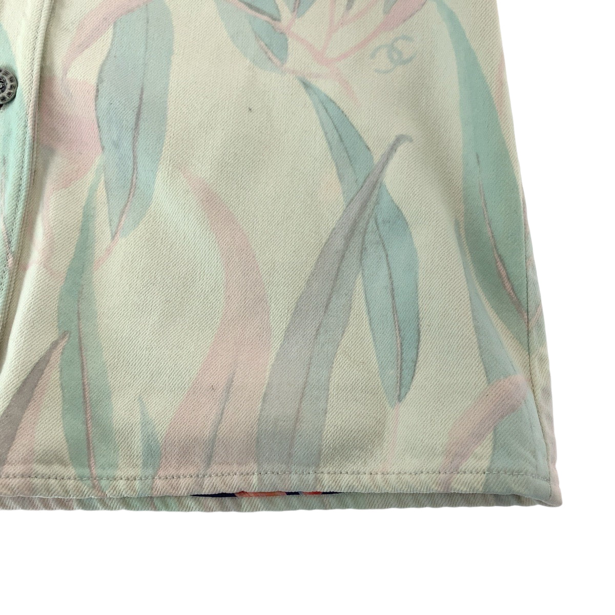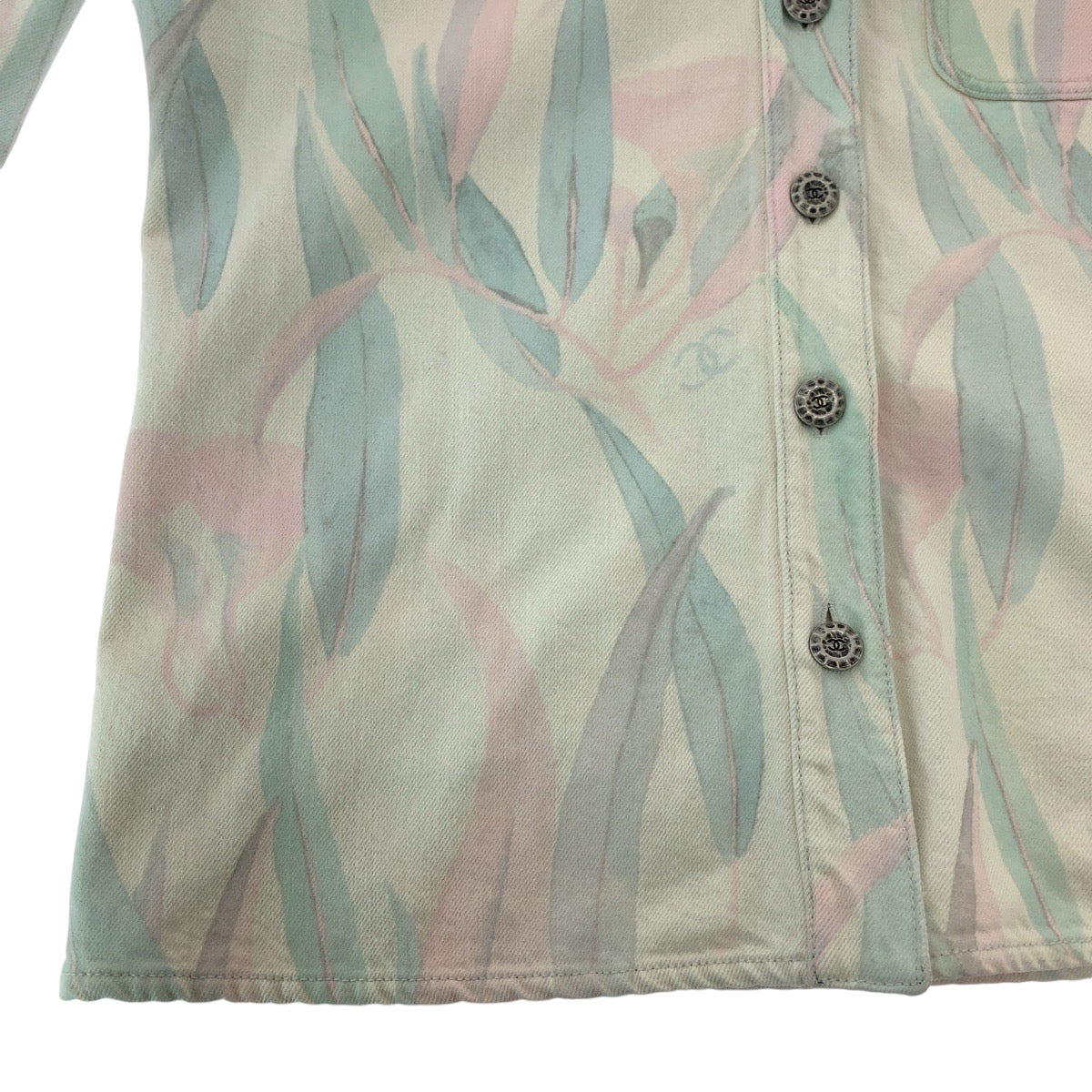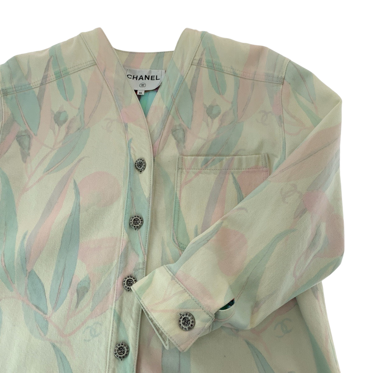 21050 CHANEL シャネル ボタニカル ココマーク サイズ36 ピンク パステルカラー シルバー金具 デニム P62659V48435 デニムジャケット ノーカラージャケット カバーオール レディース A