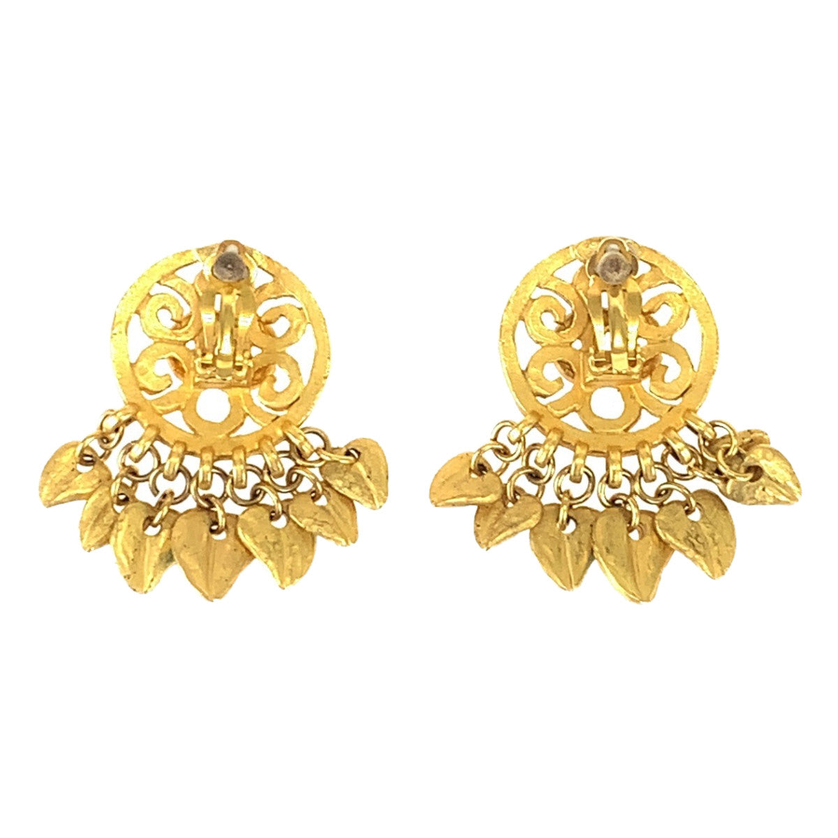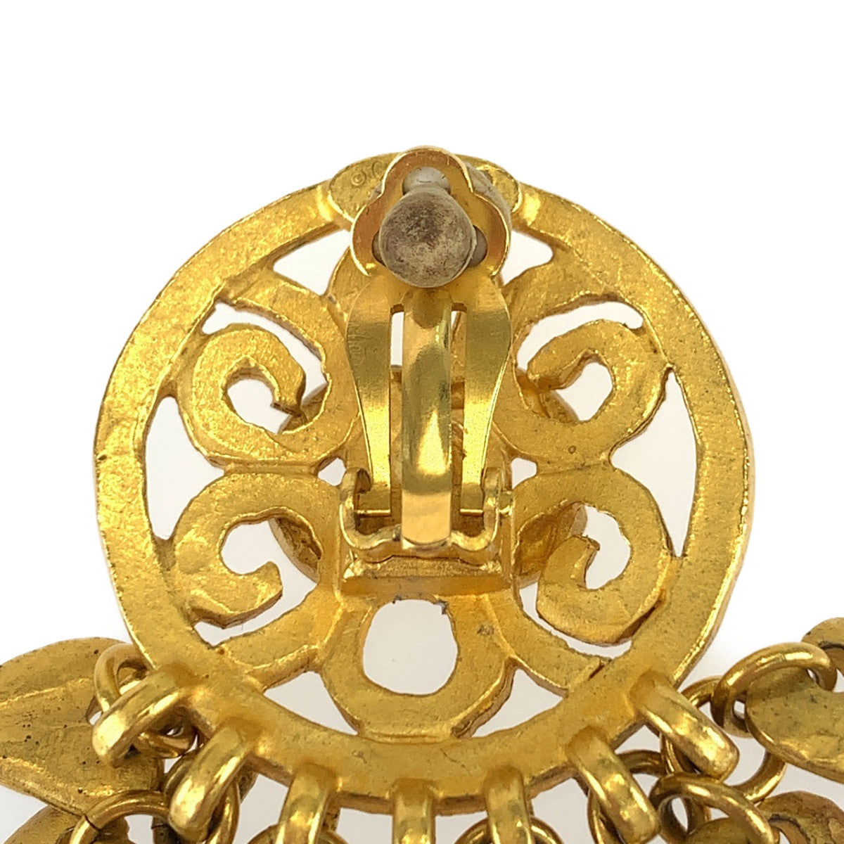 21052 CHANEL シャネル ヴィンテージ ココマーク ストーン ゴールド レッド ブルー メッキ イヤリング スイングイヤリング レディース A