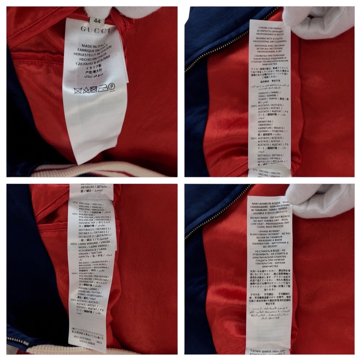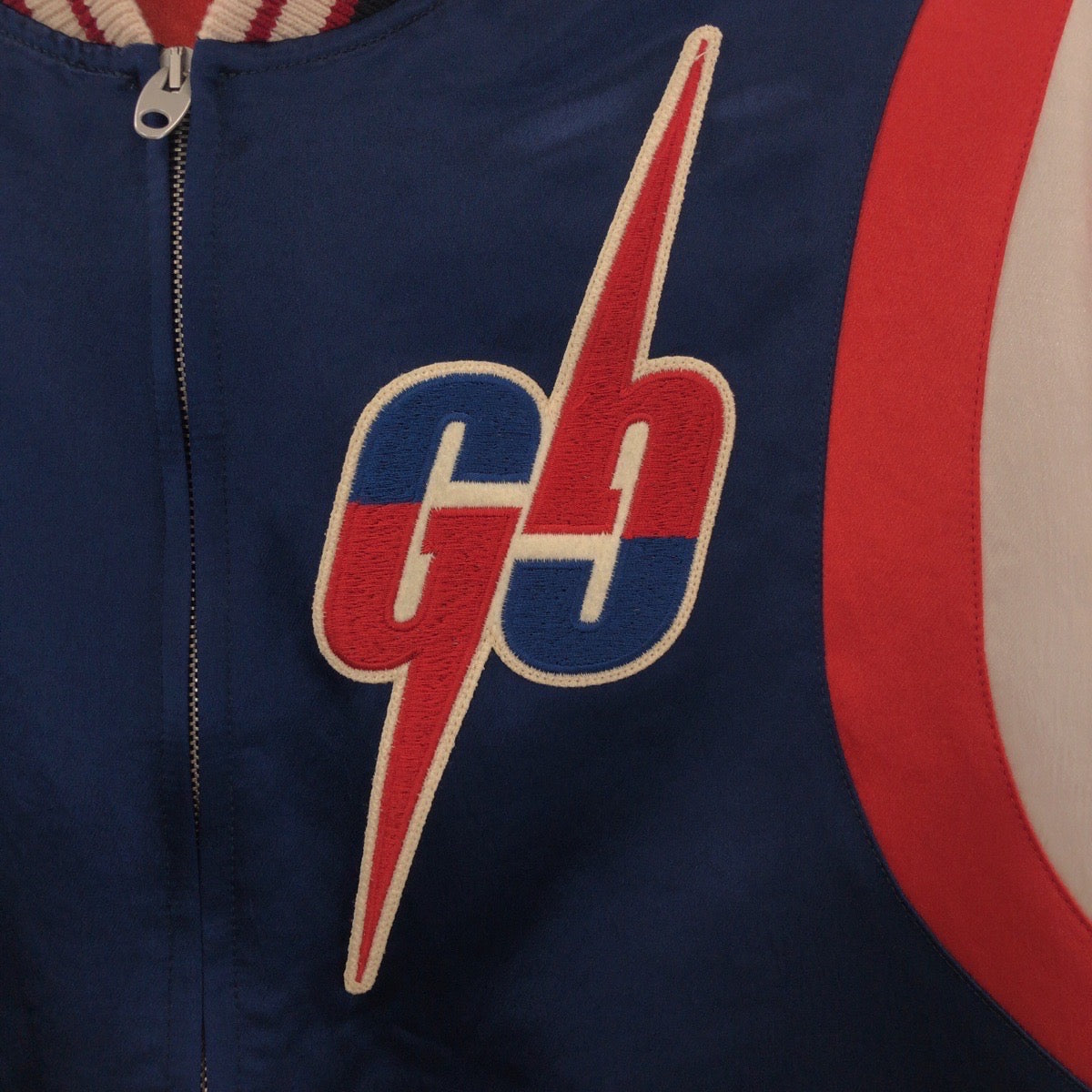 21060 GUCCI グッチ GG サイズ44 ネイビー ホワイト レッド シルバー金具 アセテート / レーヨン / ポリエステル 575315 ZABZR スタジャン ジャンパー メンズ A67