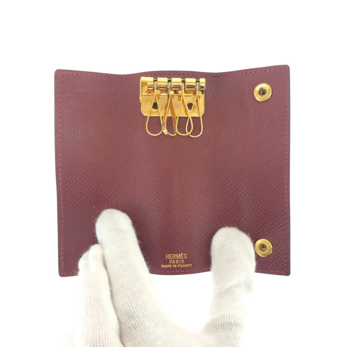 21067 HERMES エルメス ワインレッド ボルドー ゴールド金具 レザー キーケース 4連 男女兼用 レディース ABP20