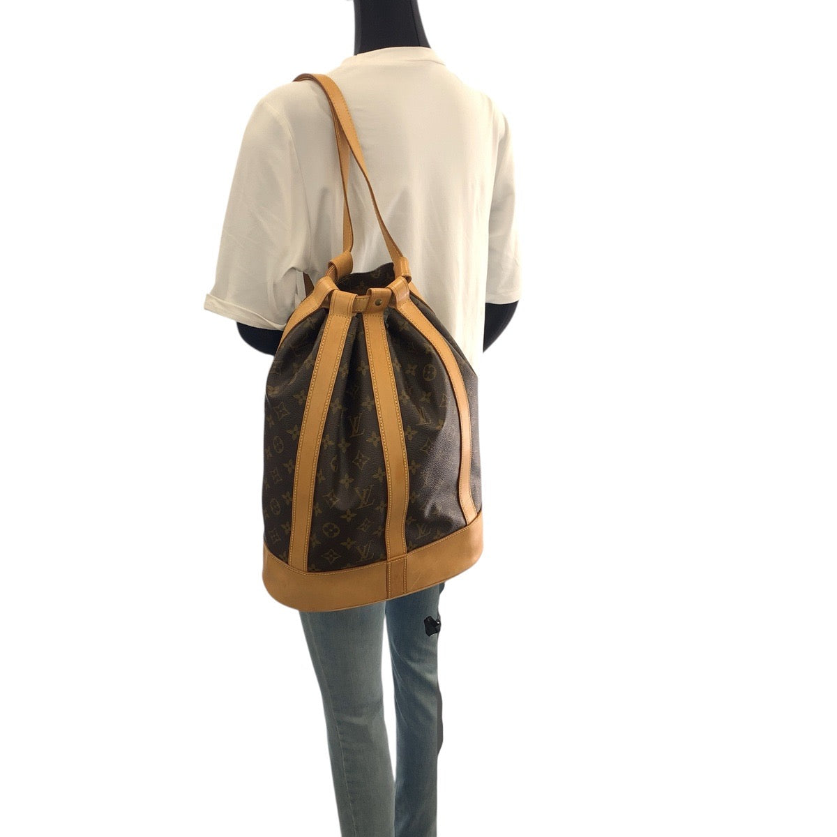 21078 LOUIS VUITTON ルイヴィトン モノグラム ランドネPM ブラウン ゴールド金具 PVC / レザー M42243 ショルダーバッグ ワンショルダー 巾着 レディース AB36