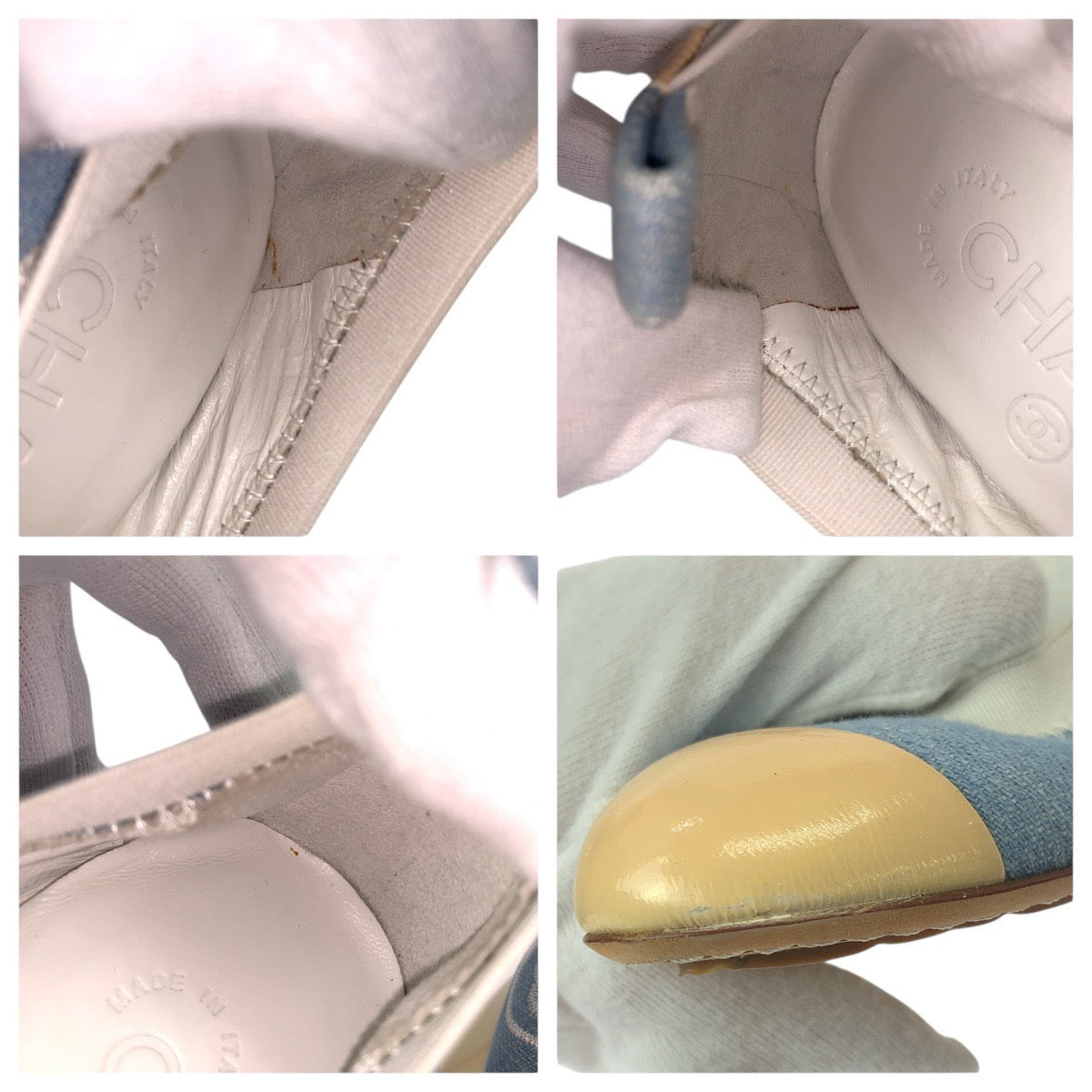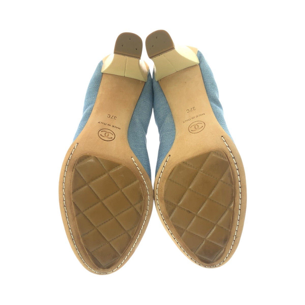 21087 CHANEL シャネル ココマーク サイズ37C ブルー デニム ベージュ デニム / パテントレザー パンプス ハイヒール レディース A28