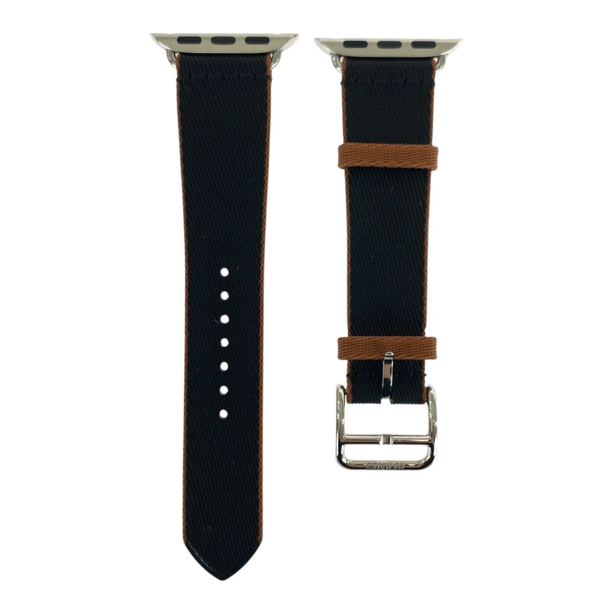21127 HERMES エルメス ツイルジャンプ シンプルトゥールストラップ ブラック ブラウン シルバー金具 キャンバス 腕時計 アップルウォッチバンド 41mm 男女兼用 レディース SA23