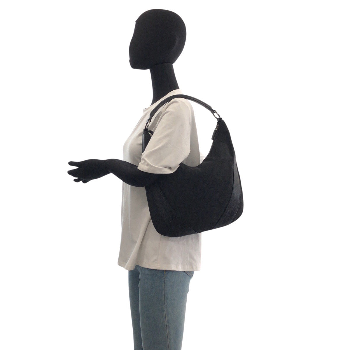 21143 GUCCI グッチ ホーボー ブラック 黒 シルバー金具 GGキャンバス / レザー 124357 ショルダーバッグ ハンドバッグ レディース ABP42