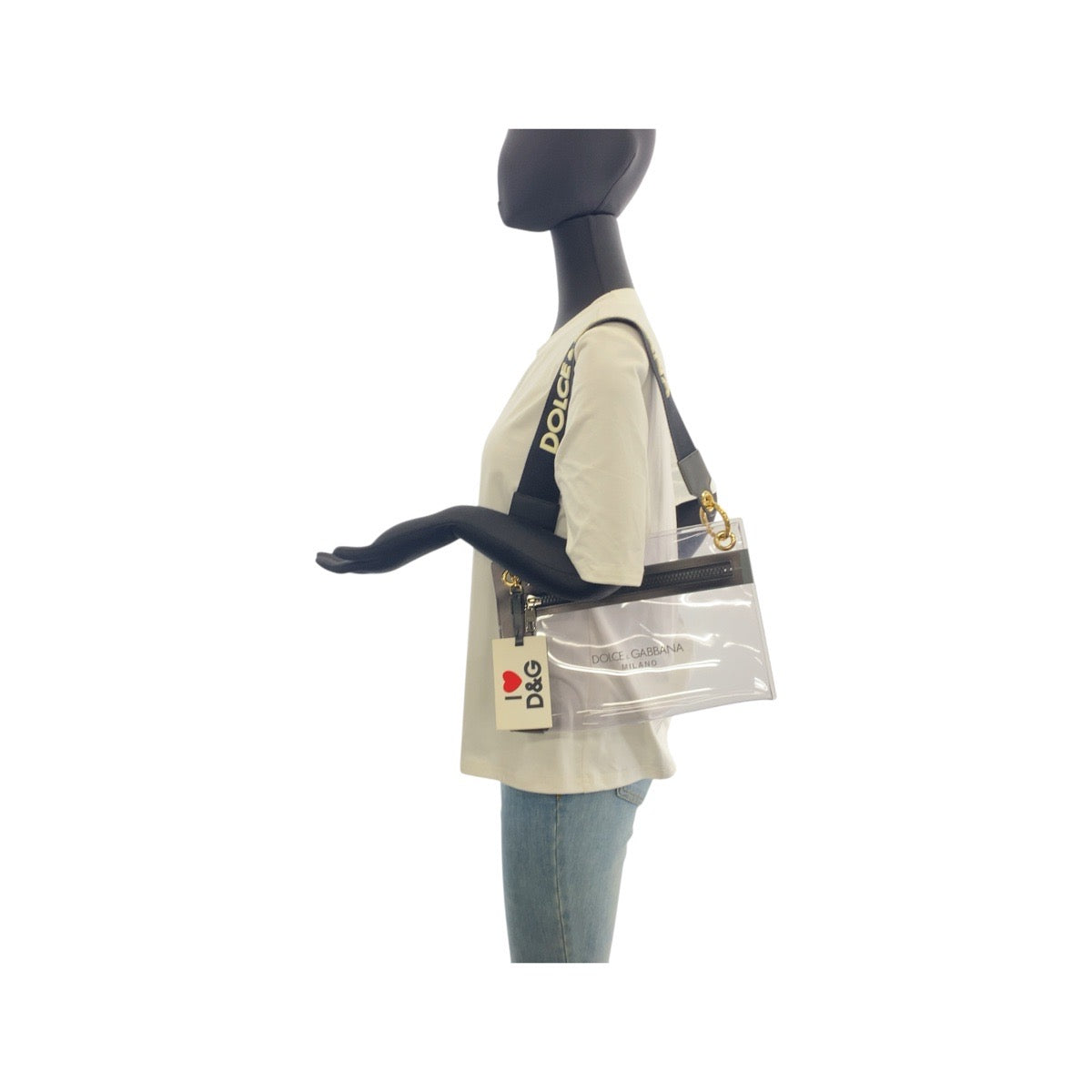 21145 DOLCE&GABBANA ドルチェアンドガッバーナ クリア ブラック ゴールド金具 PVC ショルダーバッグ クラッチバッグ レディース ABP14
