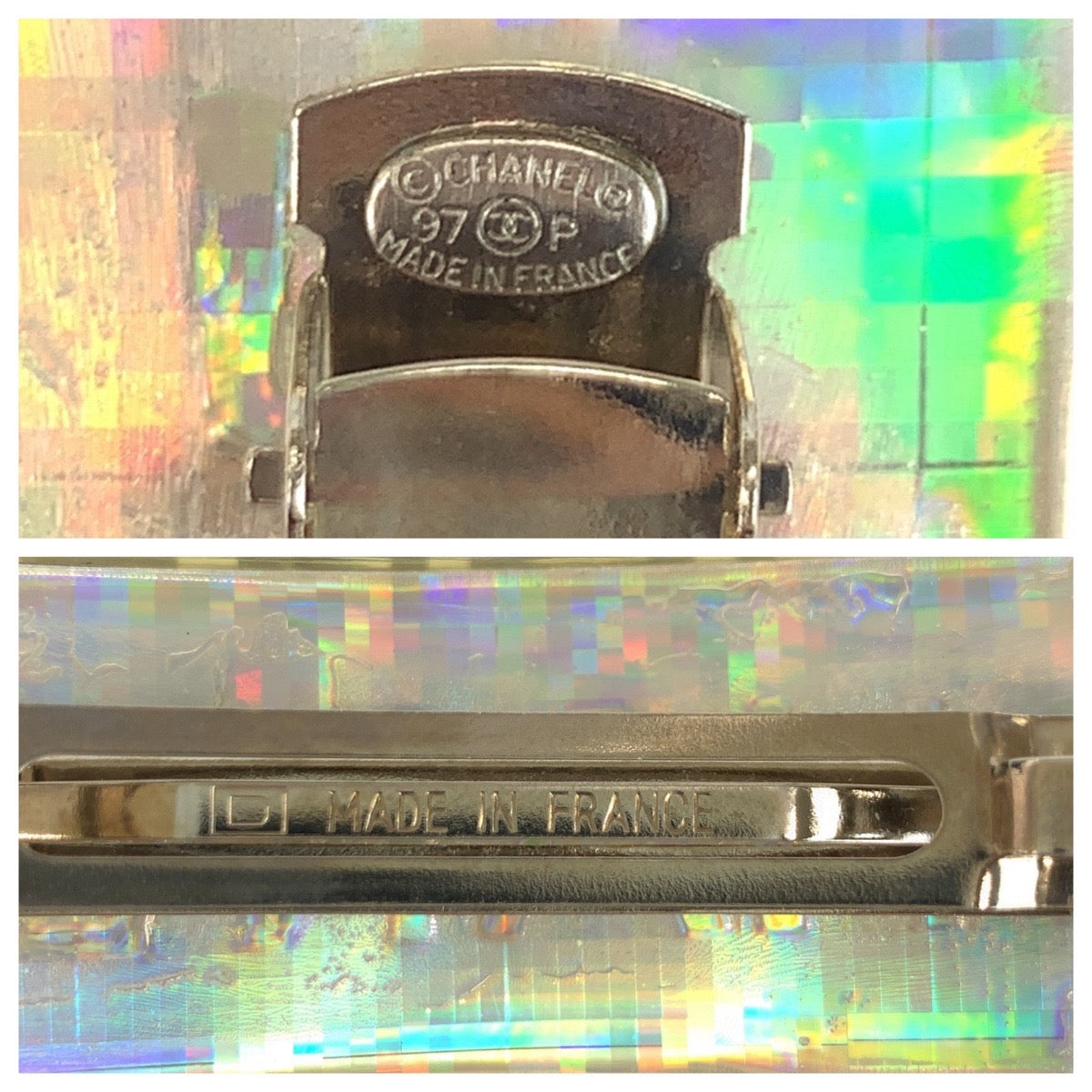 21160 CHANEL シャネル ロゴ シルバー オーロラ プラスチック / メッキ バレッタ ヘアアクセサリー 97P刻印 レディース ABP40