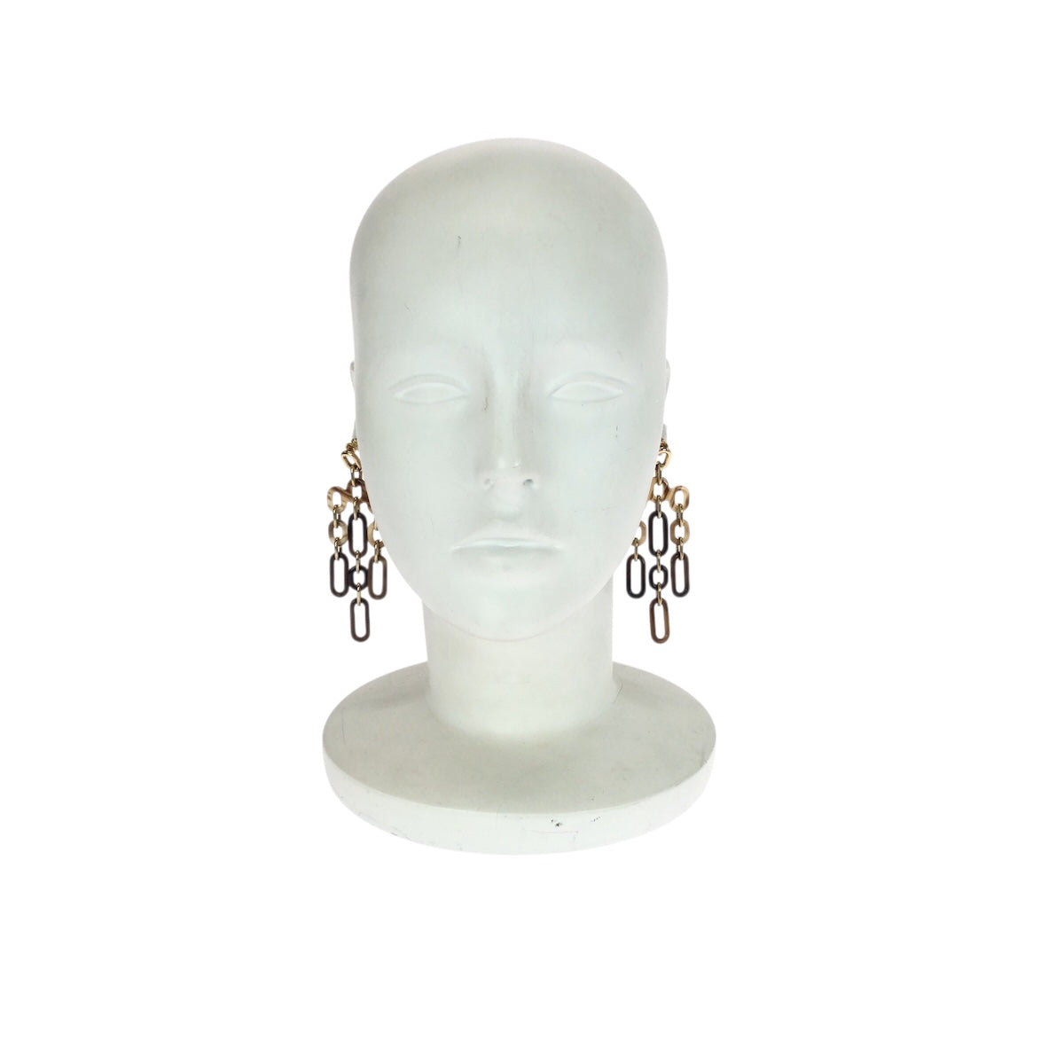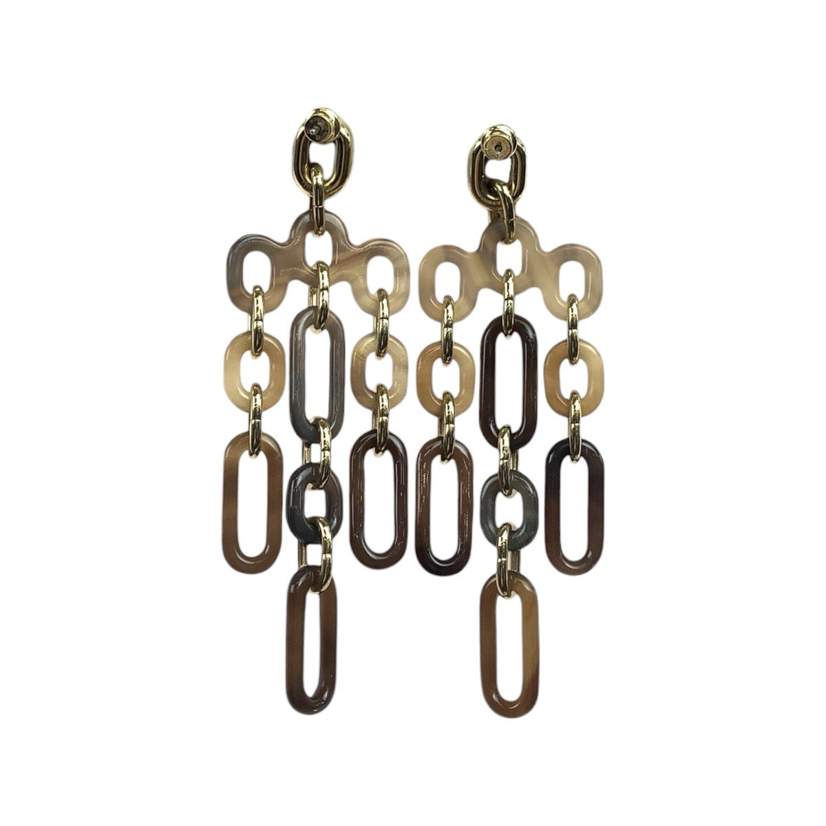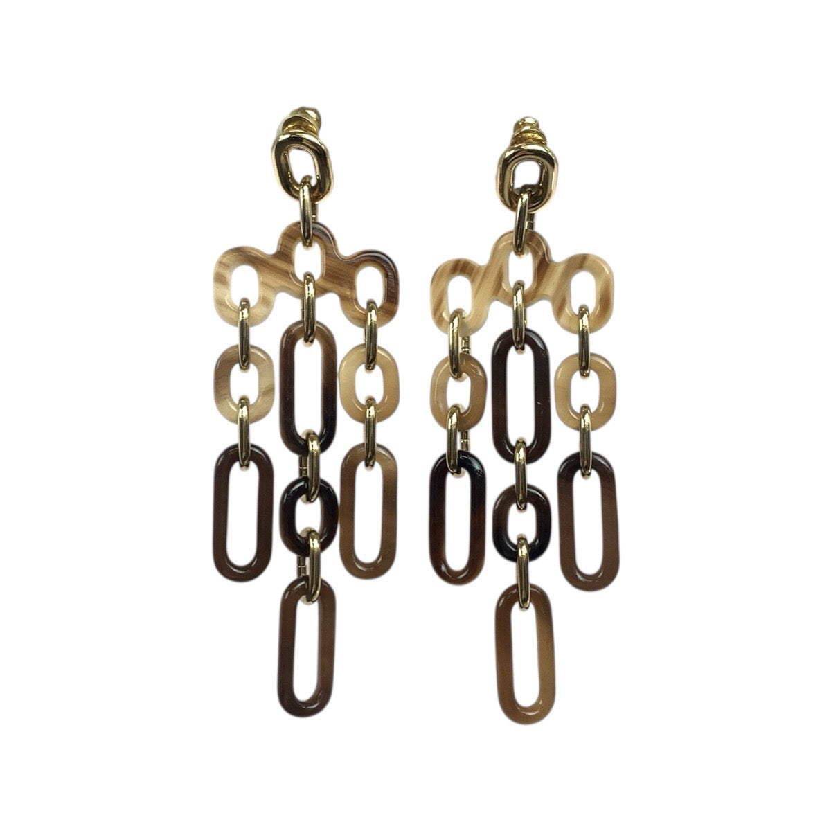 21196 HERMES エルメス レジーユ ブラウン ゴールド金具 バッファローホーン / メタル ピアス レディース SA72