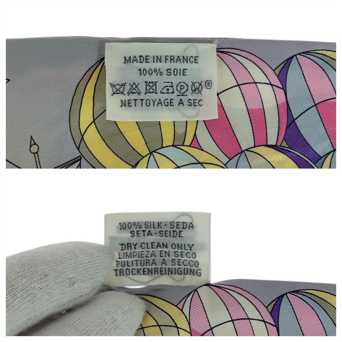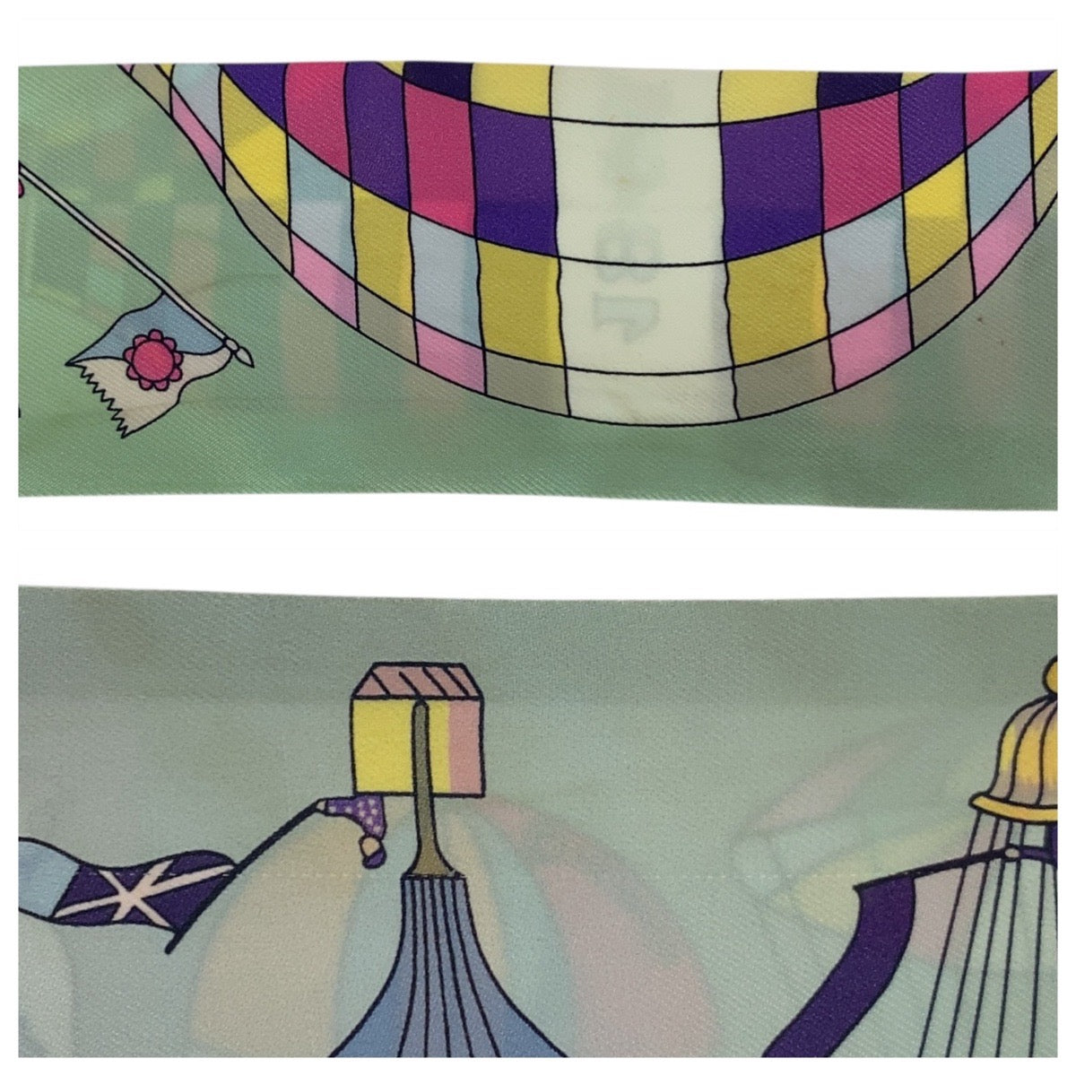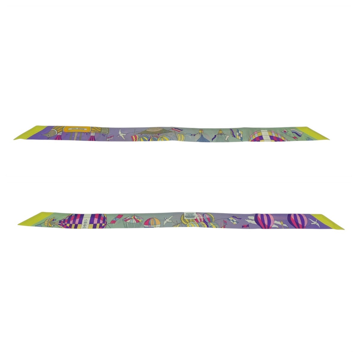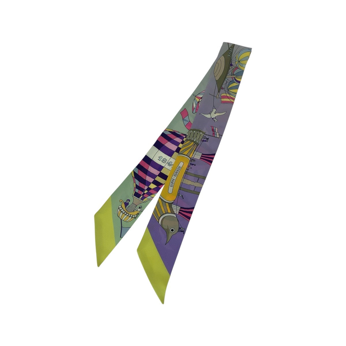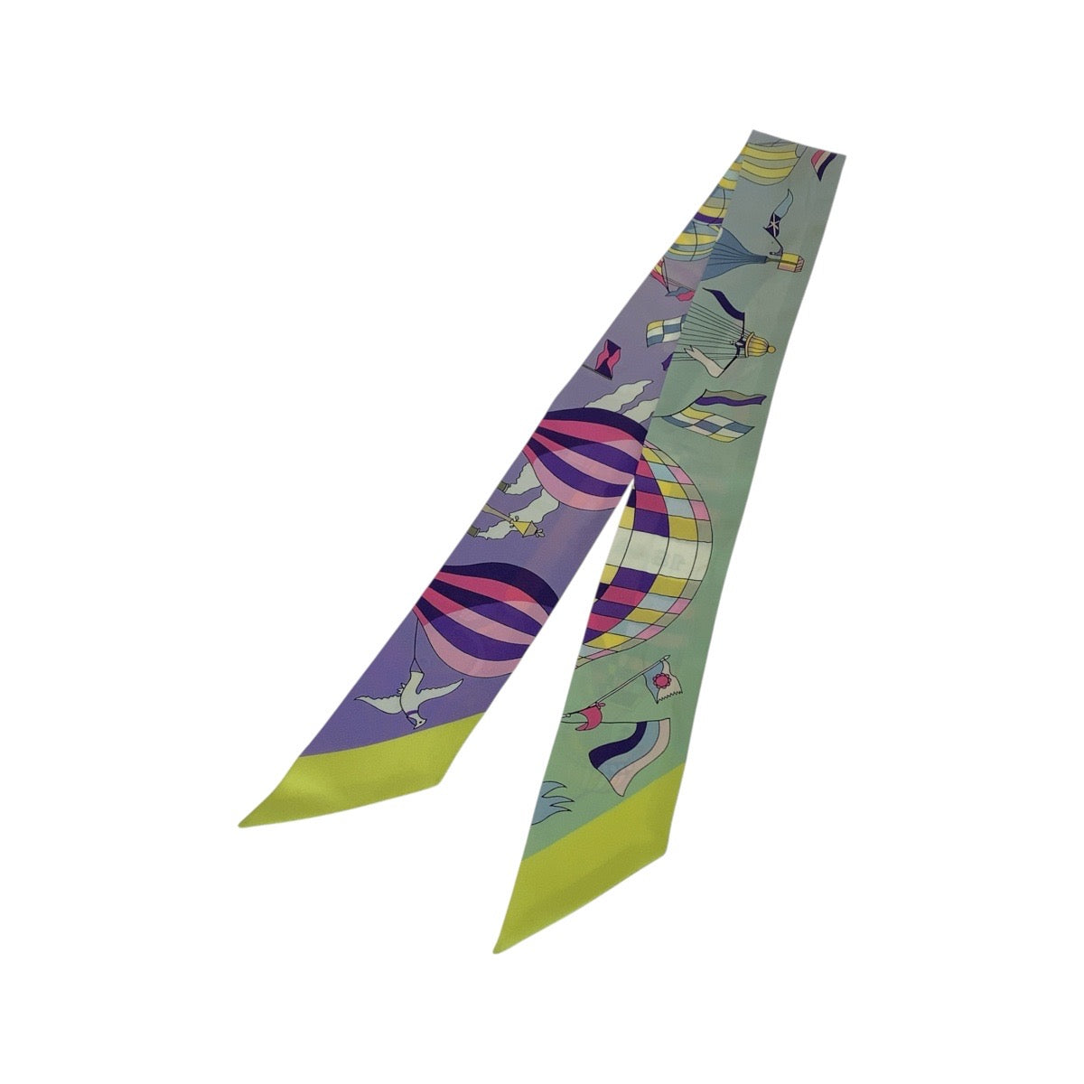 21207 HERMES エルメス 大空の狂気 ツイリー パープル グリーン イエロー スカーフ リボンスカーフ レディース ABP18