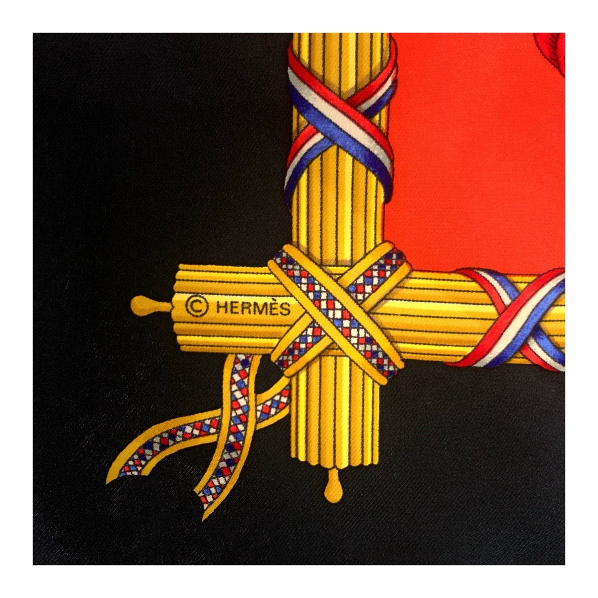 21211 HERMES エルメス カレ90 フランス革命を記念して レッド ブラック シルク スカーフ レディース A24