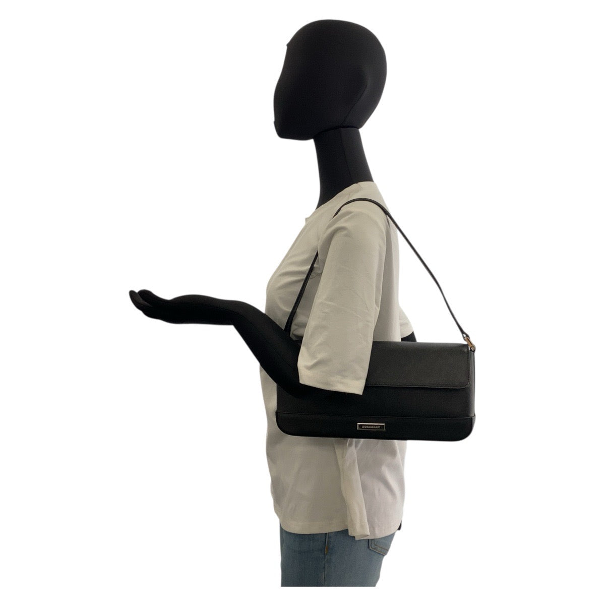 21223 BURBERRY バーバリー 中チェック柄 ブラック 黒 シルバー金具 レザー ショルダーバッグ レディース A28