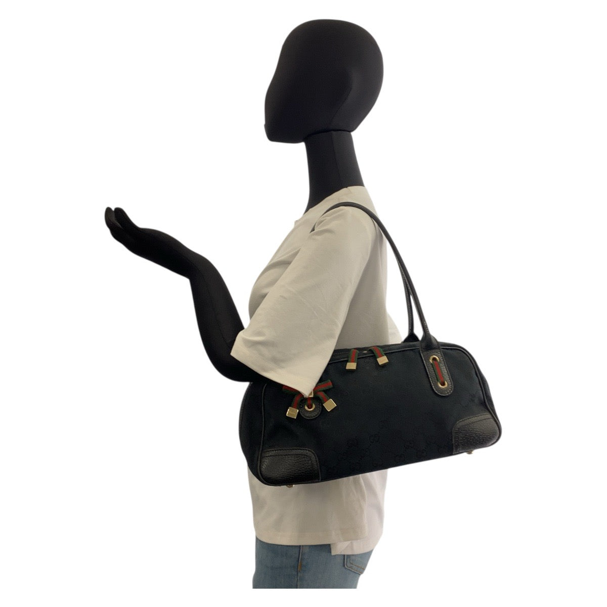 21234 GUCCI グッチ シェリーライン プリンシー ブラック 黒 ゴールド金具 GGキャンバス / レザー 161720 ショルダーバッグ ミニボストンバッグ レディース ABP36
