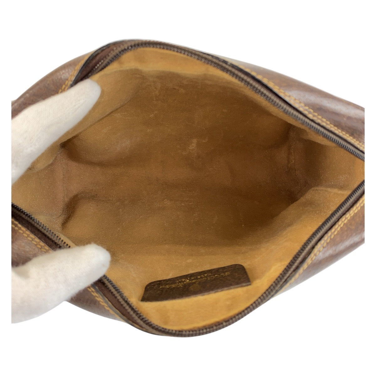 21236 GUCCI グッチ ヴィンテージ シェリーライン ベージュ ブラウン ゴールド金具 GGスプリームキャンバス / レザー 32 014 3553 クラッチバッグ セカンドバッグ メンズ AB15