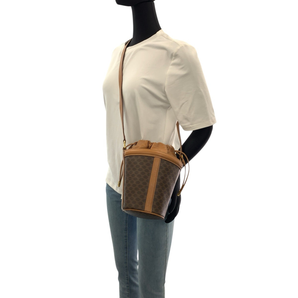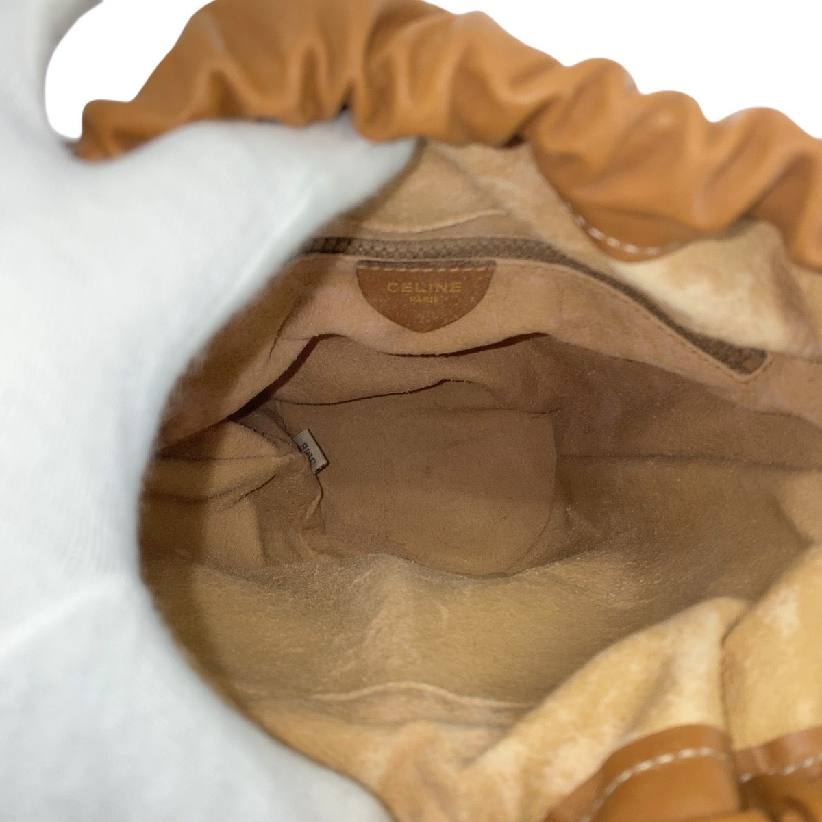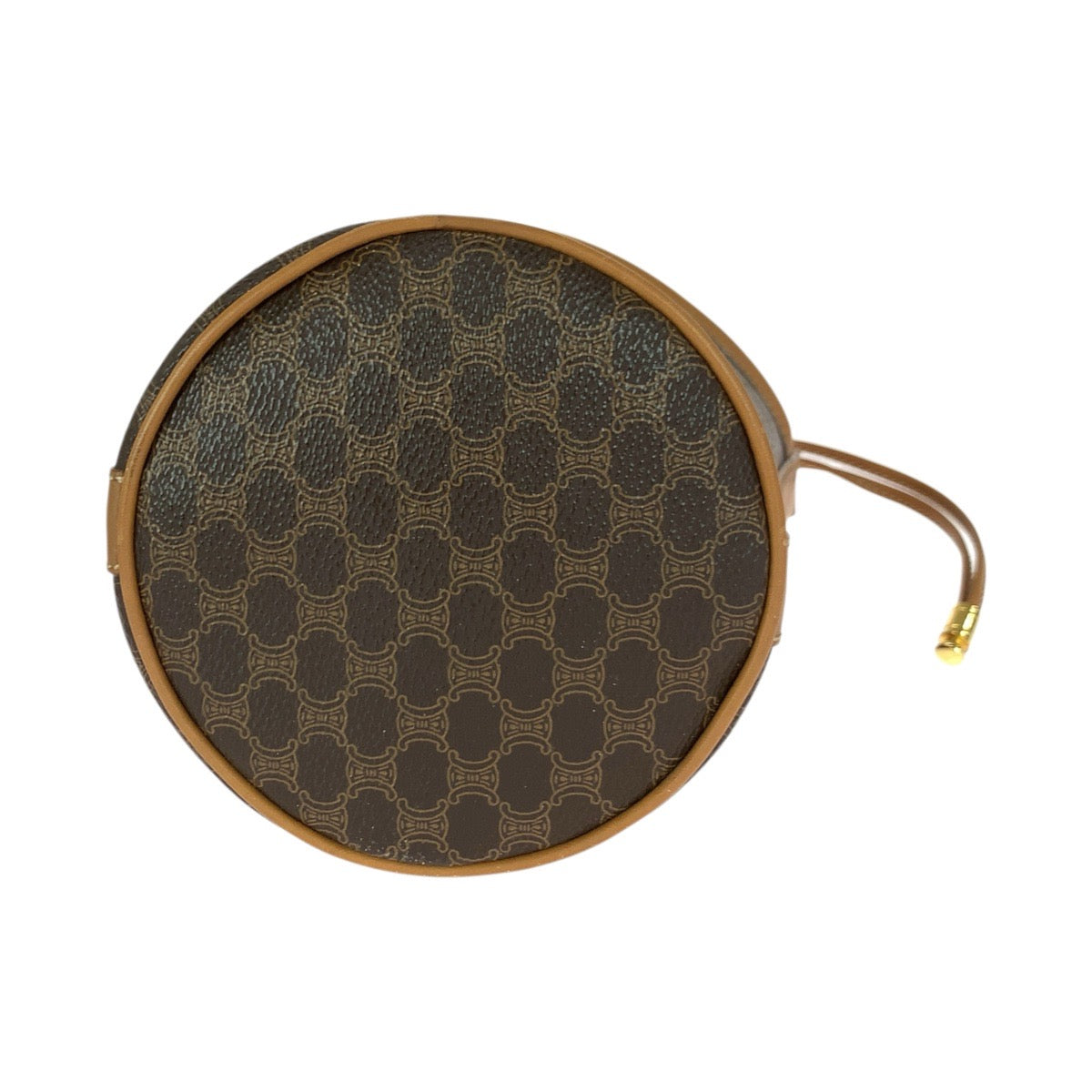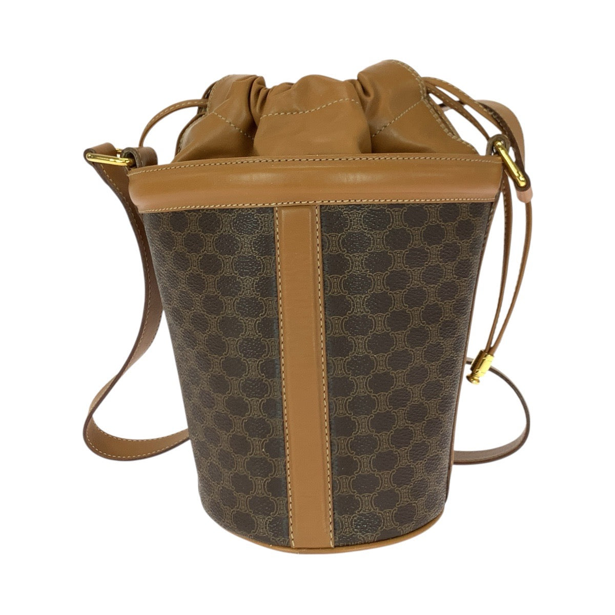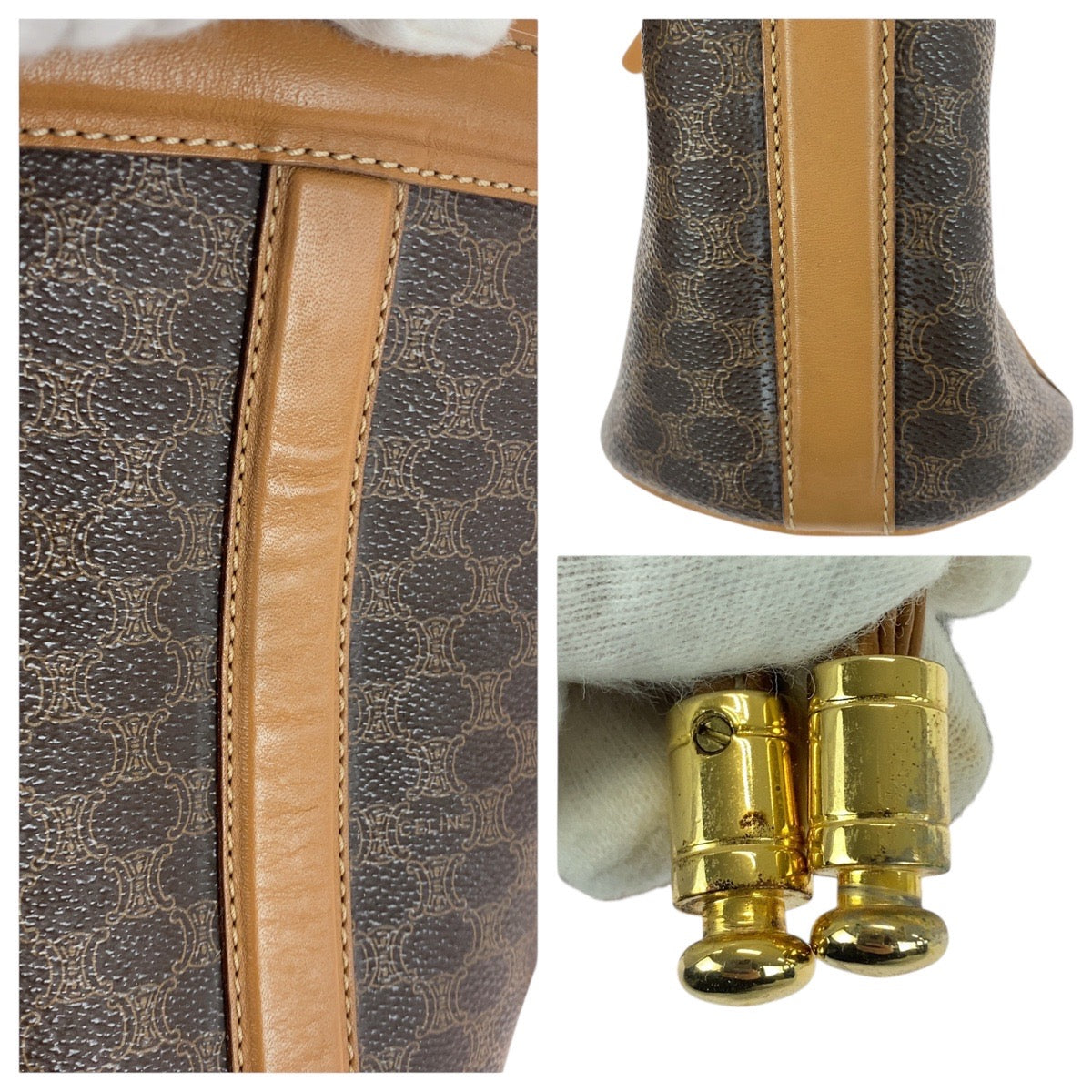 21253 CELINE セリーヌ マカダム ブラウン ゴールド金具 PVC / レザー ショルダーバッグ 巾着 レディース ABP38