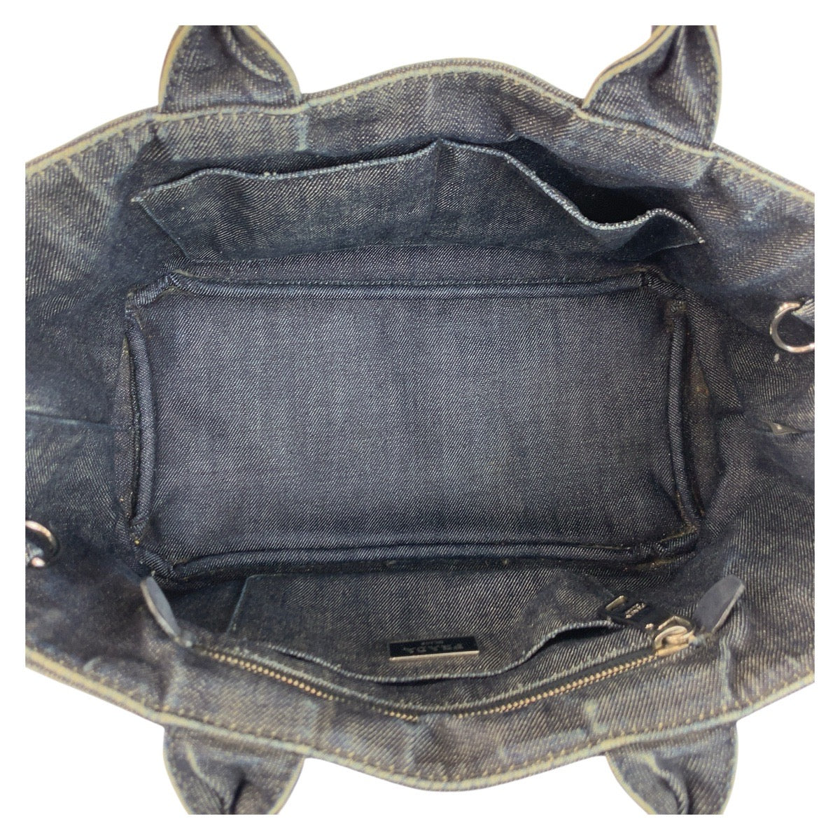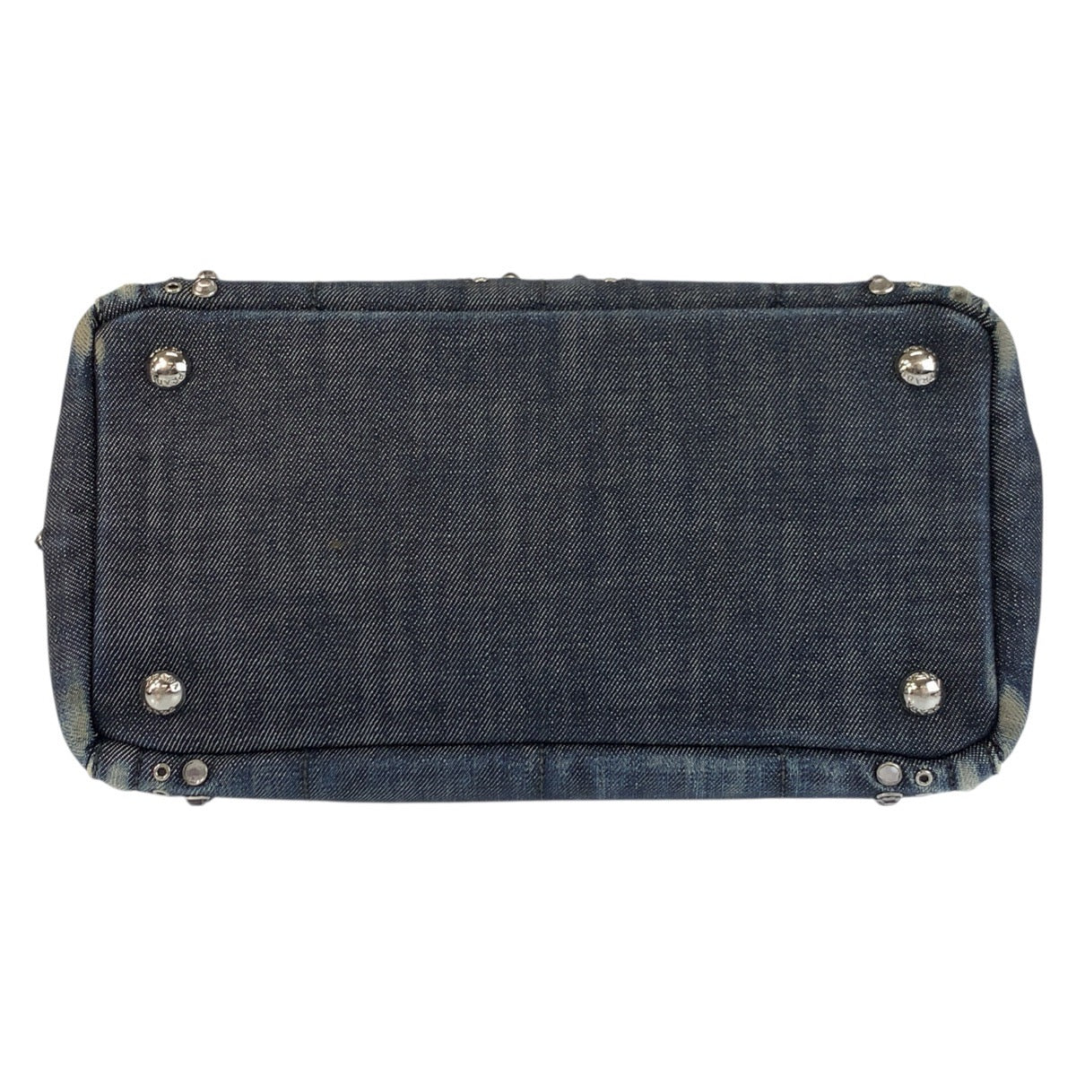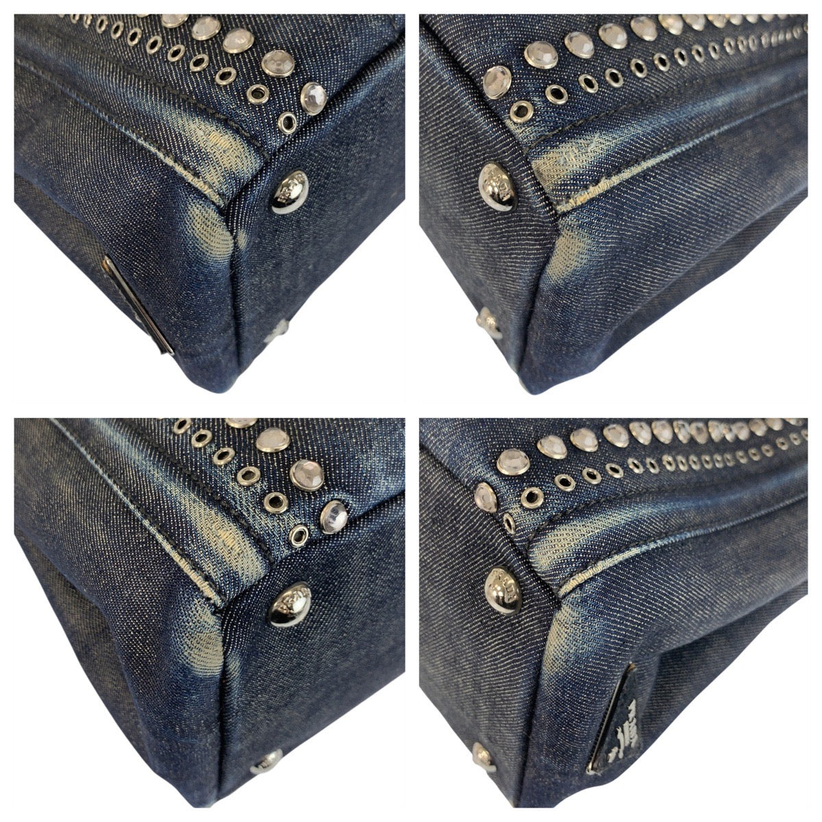 21273 PRADA プラダ ビジュー カナパ 三角ロゴプレート ネイビー ブルー シルバー金具 デニム トートバッグ ショルダーバッグ 2way レディース AB