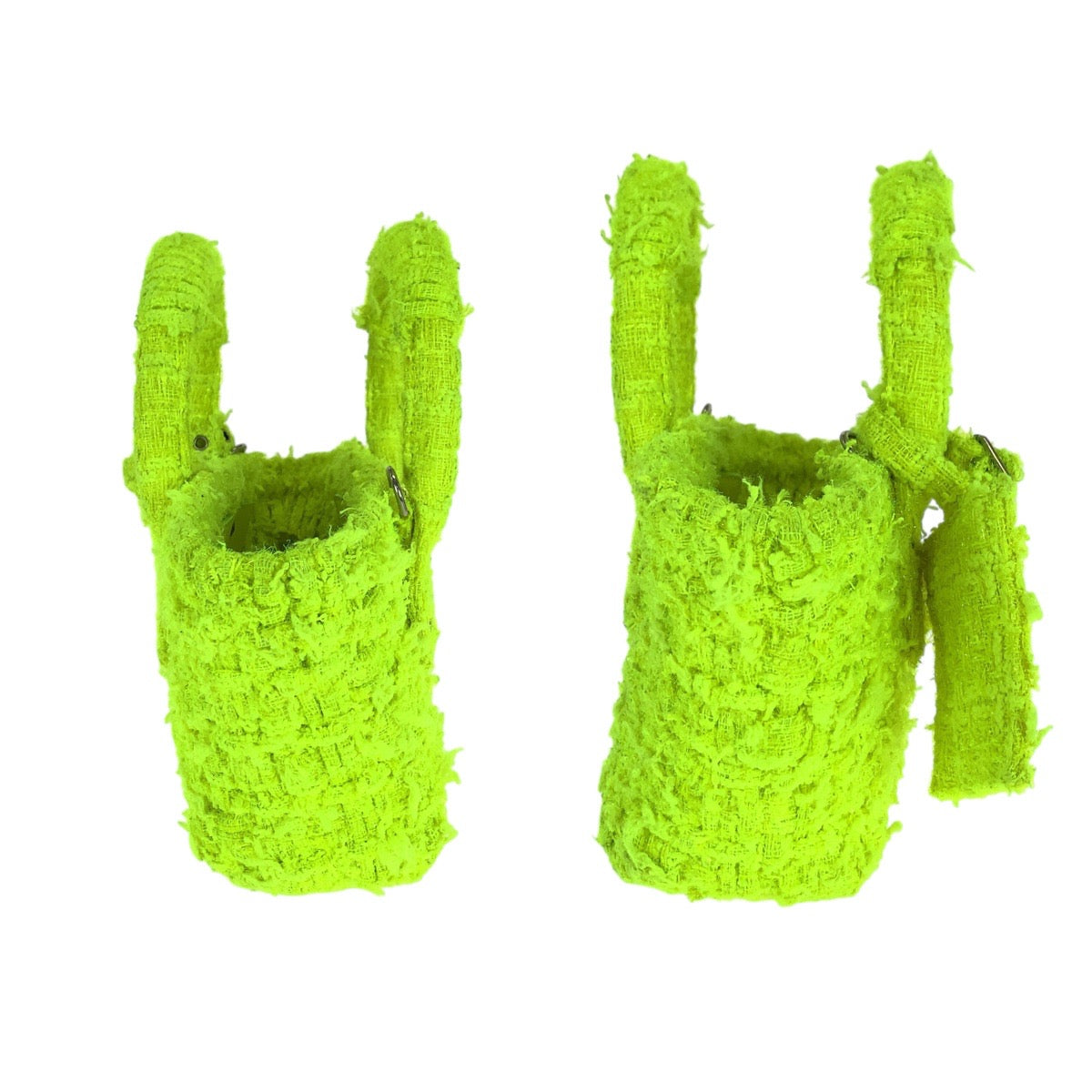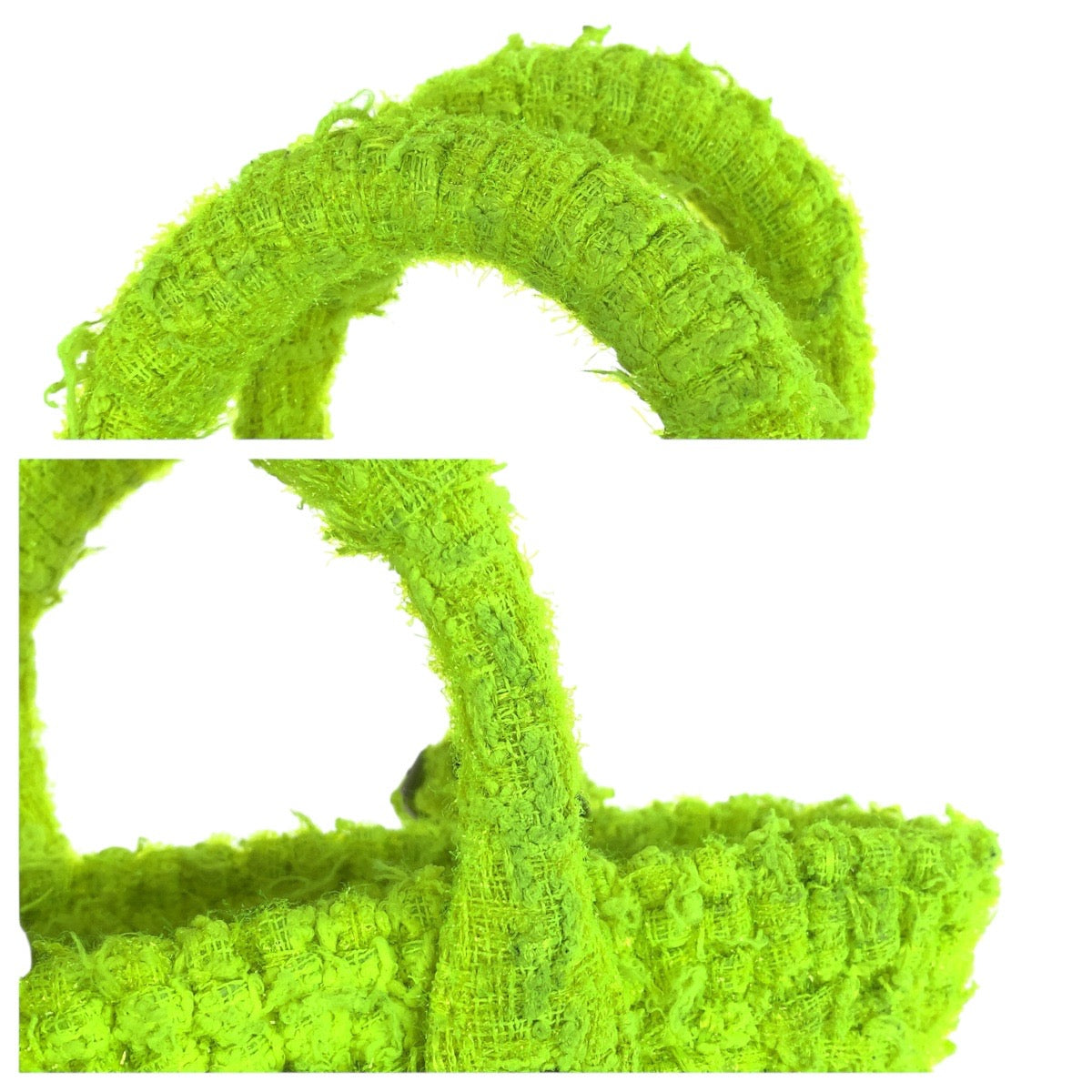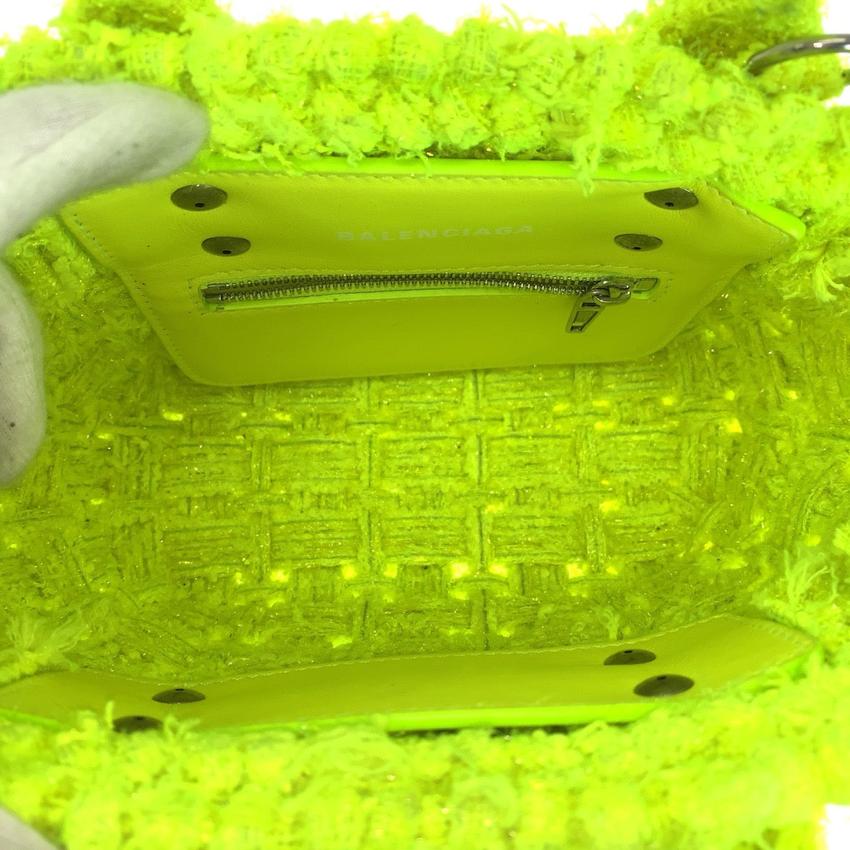 21274 BALENCIAGA バレンシアガ ビストロXXS ネオンイエロー シルバー金具 ツイード / レザー 678028 ハンドバッグ ショルダーバッグ バスケット レディース ABP