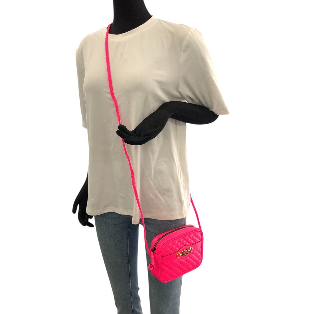 21288 GUCCI グッチ ホースビット インターローキング ピンク シルバー ゴールド金具 レザー 534950 ショルダーバッグ ポシェット カメラバッグ レディース A78