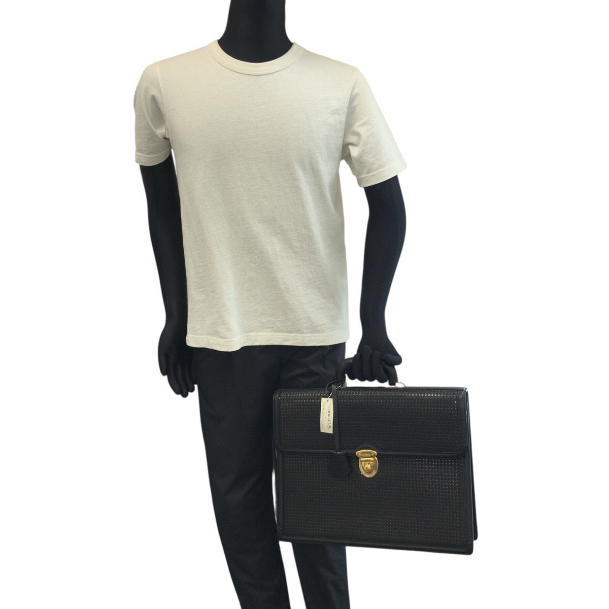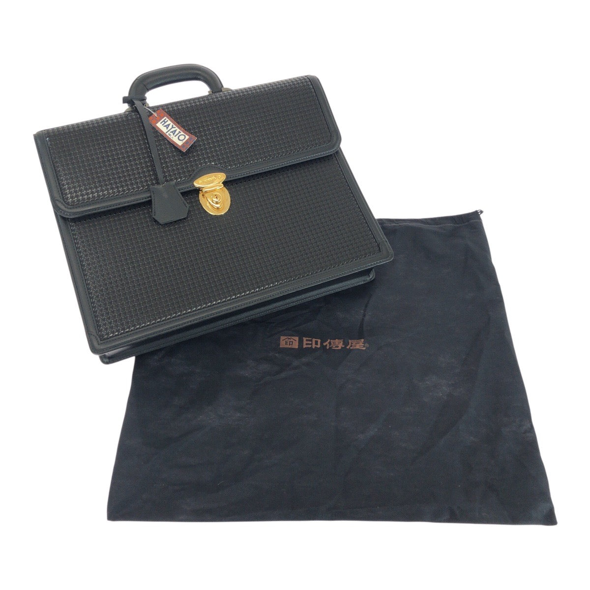 21299 INDENYA 印傳屋 HAYATO 隼人 千鳥格子柄 ブラック 黒 ゴールド金具 レザー ビジネスバッグ ブリーフケース メンズ SA63