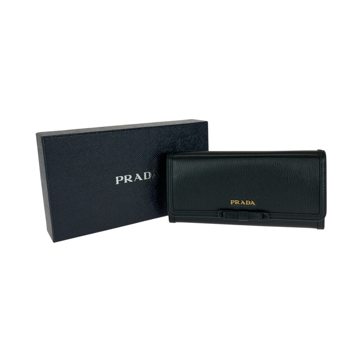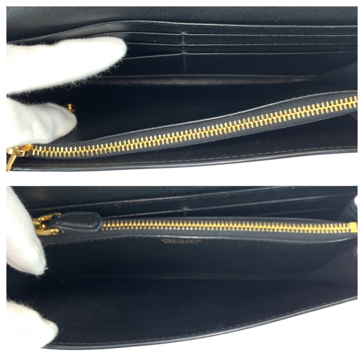 21306 PRADA プラダ ブラック 黒 ゴールド金具 レザー 長財布 ロングウォレット レディース A23