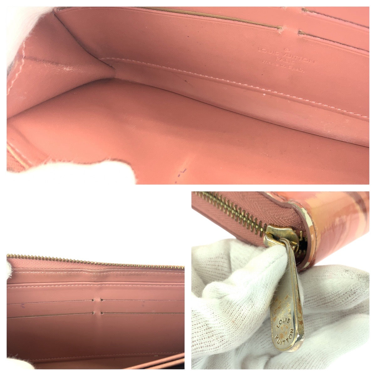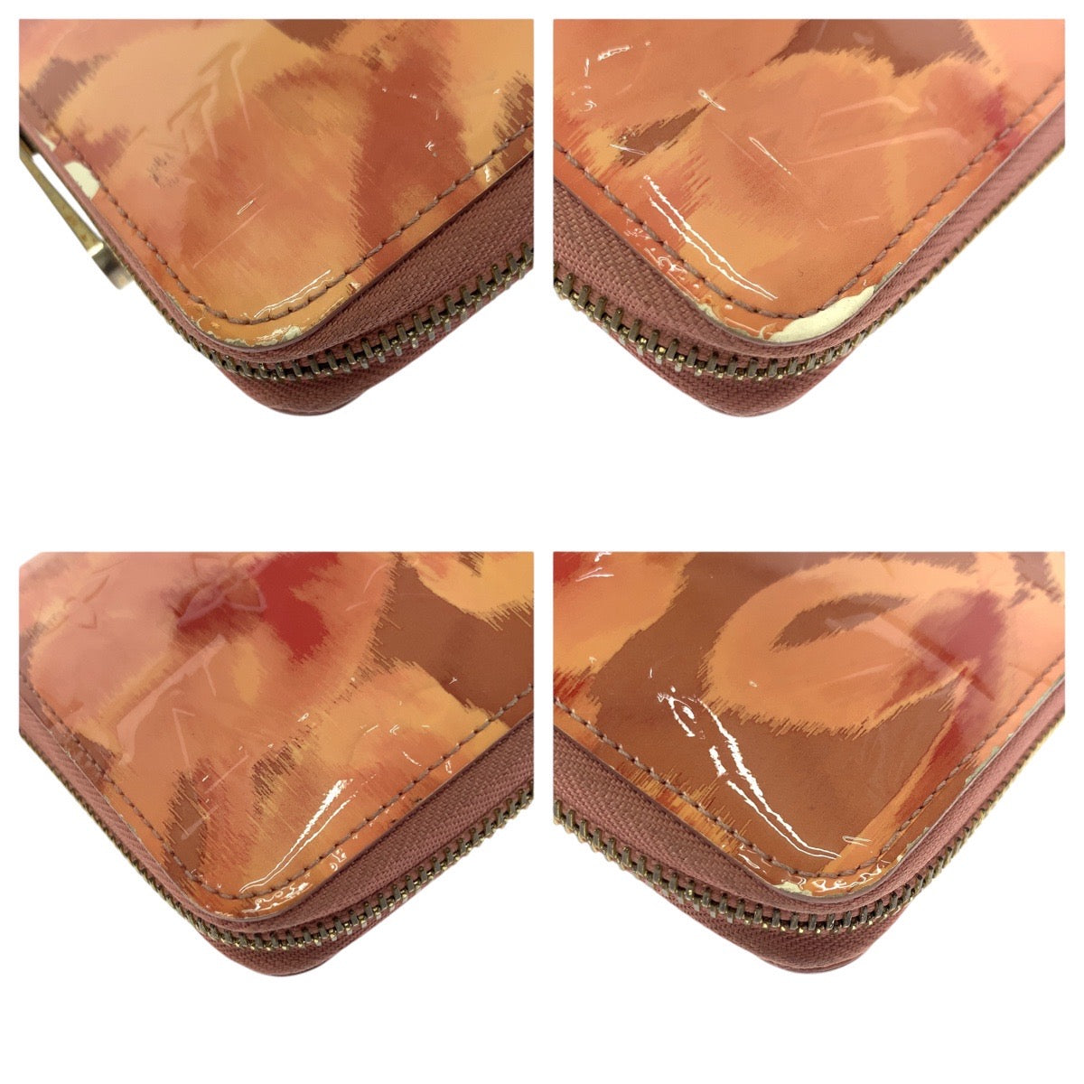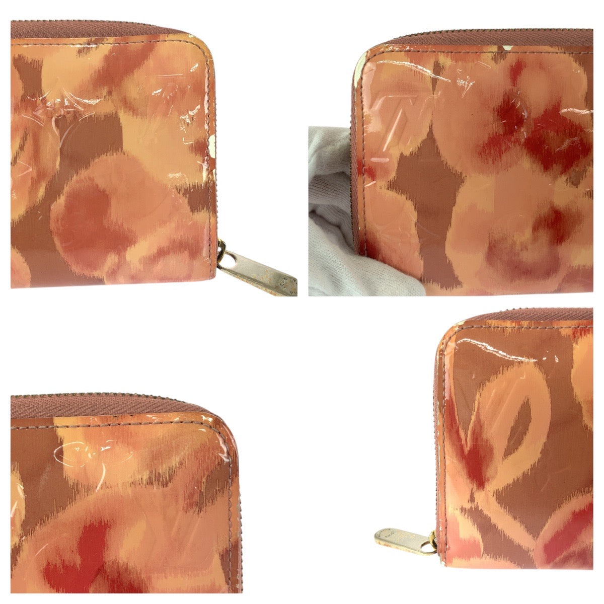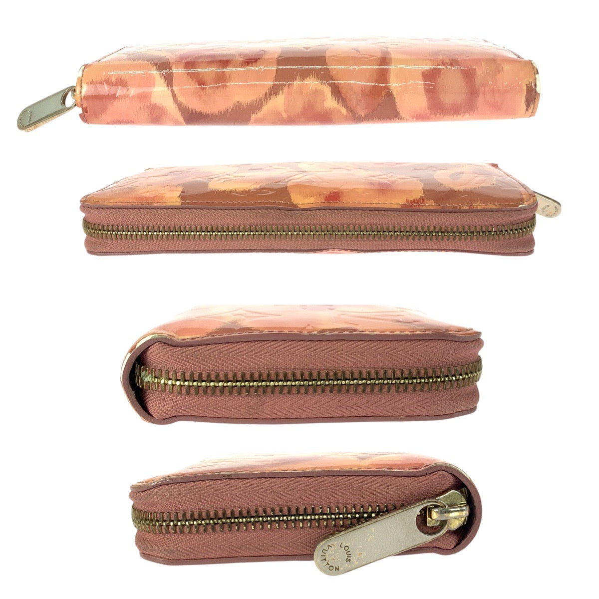 21307 LOUIS VUITTON ルイヴィトン イカットフラワー サーモンピンク ゴールド金具 ヴェルニ / パテントレザー M90020 長財布 ラウンドファスナー レディース AB18