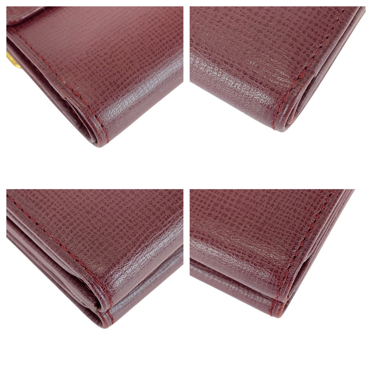 21309 CARTIER カルティエ ヴィンテージ マストライン Wホック ワインレッド ゴールド金具 レザー 折財布 コンパクトウォレット レディース ABP15
