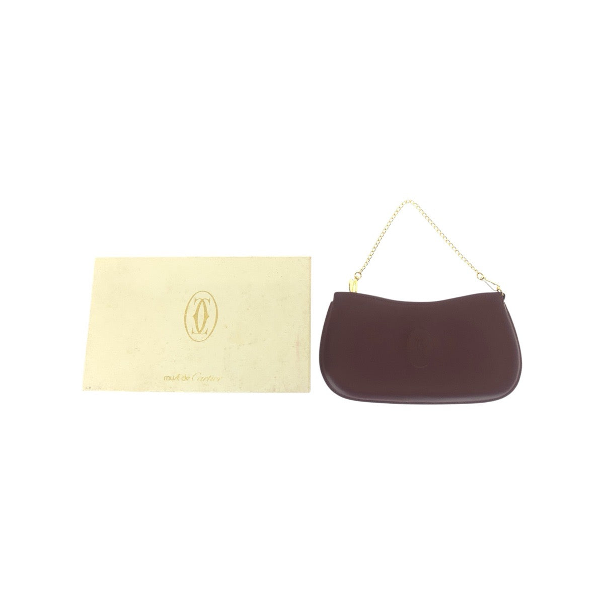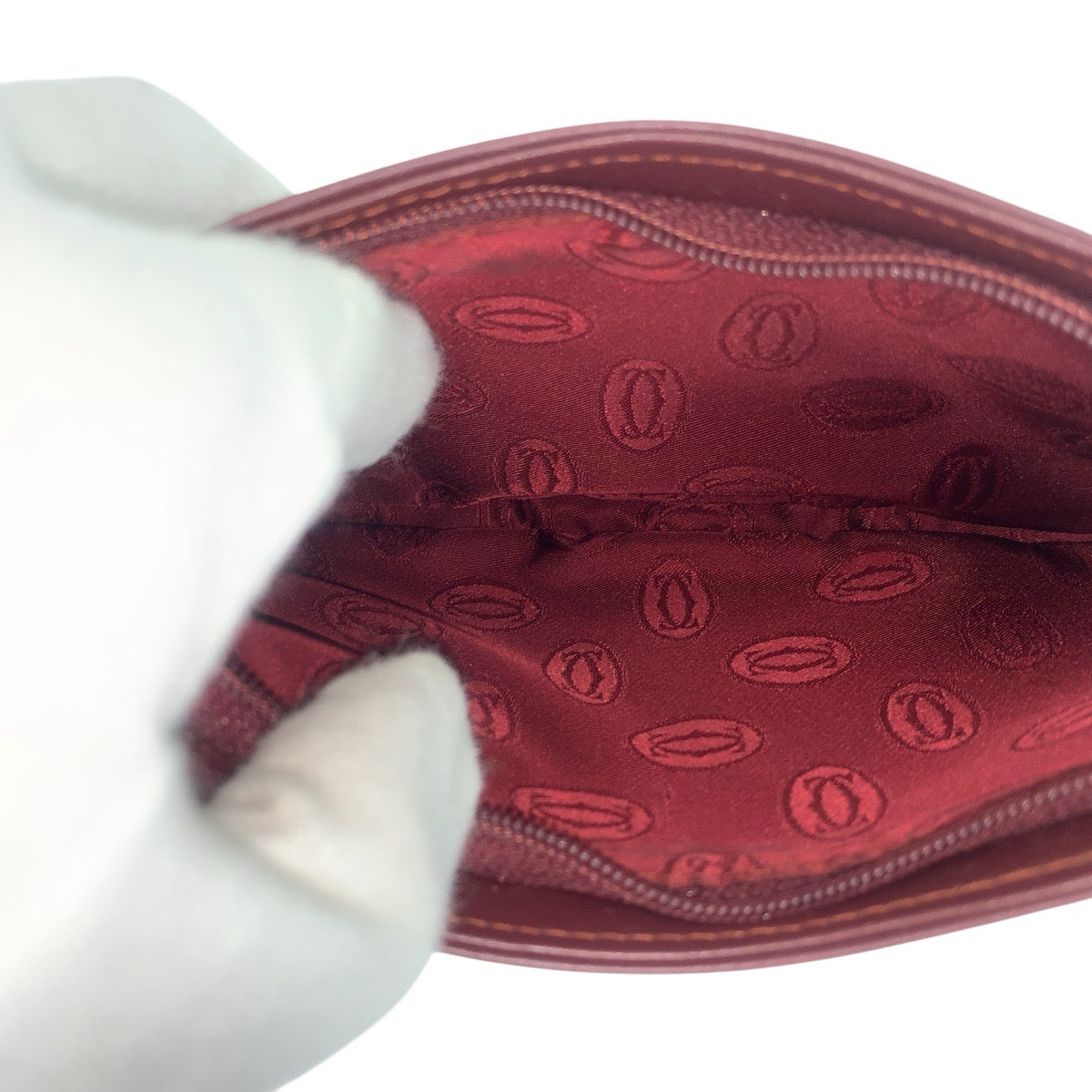 21310 CARTIER カルティエ マストライン ワインレッド ゴールド金具 レザー ハンドバッグ アクセサリーポーチ レディース A14