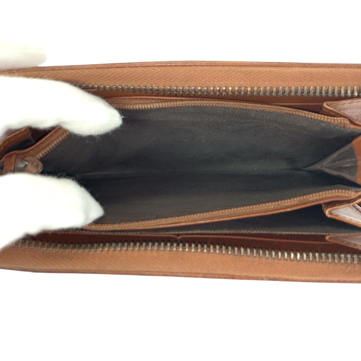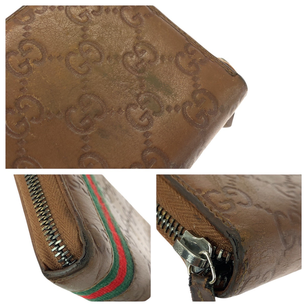 21316 GUCCI グッチ シェリーライン ブラウン シルバー金具 レザー / キャンバス 308009 長財布 ラウンドファスナー レディース ABP