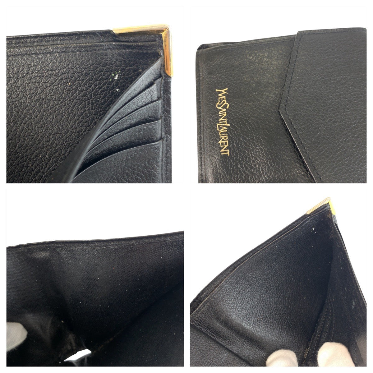 21322 YVES SAINT LAURENT イヴ サンローラン ヴィンテージ YSL ブラック 黒 ゴールド金具 レザー 折り財布 コンパクトウォレット メンズ AB